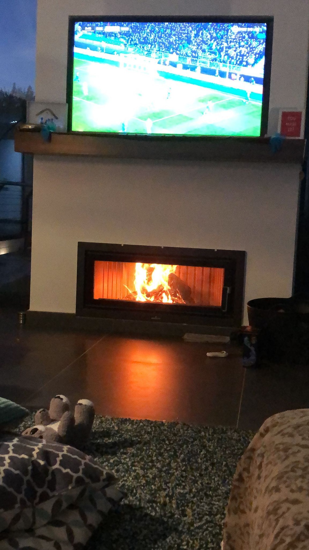 Los interiores modernos se complementan con un acogedor fuego de registro, perfecto para las noches más frías.
