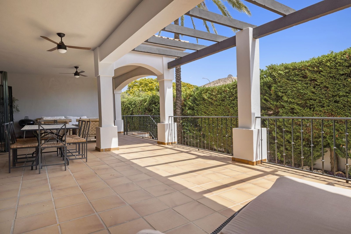 Este hermoso y espacioso apartamento en planta baja de 3 dormitorios y 3,5 baños se encuentra en el codiciado complejo Jardines de la Colonia, en San Pedro de Alcántara, Marbella.