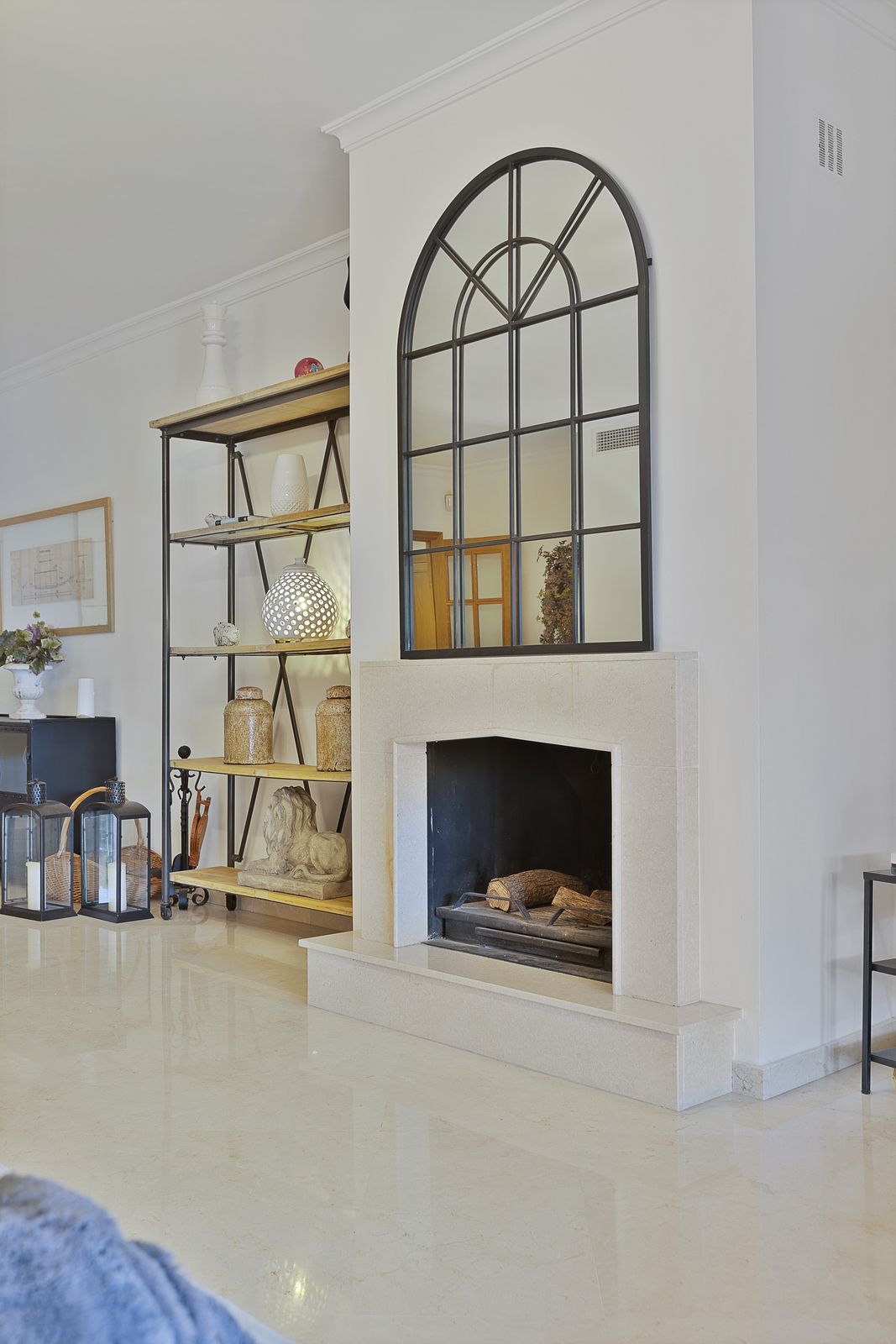 El apartamento se abre a un elegante pasillo de entrada, que conduce a una sala de estar y comedor amplia y luminosa con una acogedora chimenea.