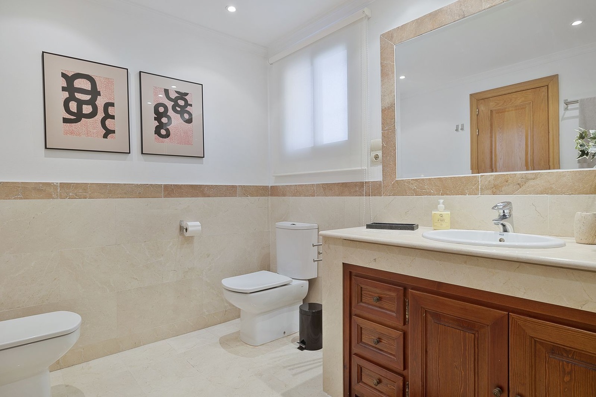 El dormitorio principal tiene baño en suite con vestidor, mientras que los dos dormitorios de invitados adicionales también cuentan con baños en suite.
