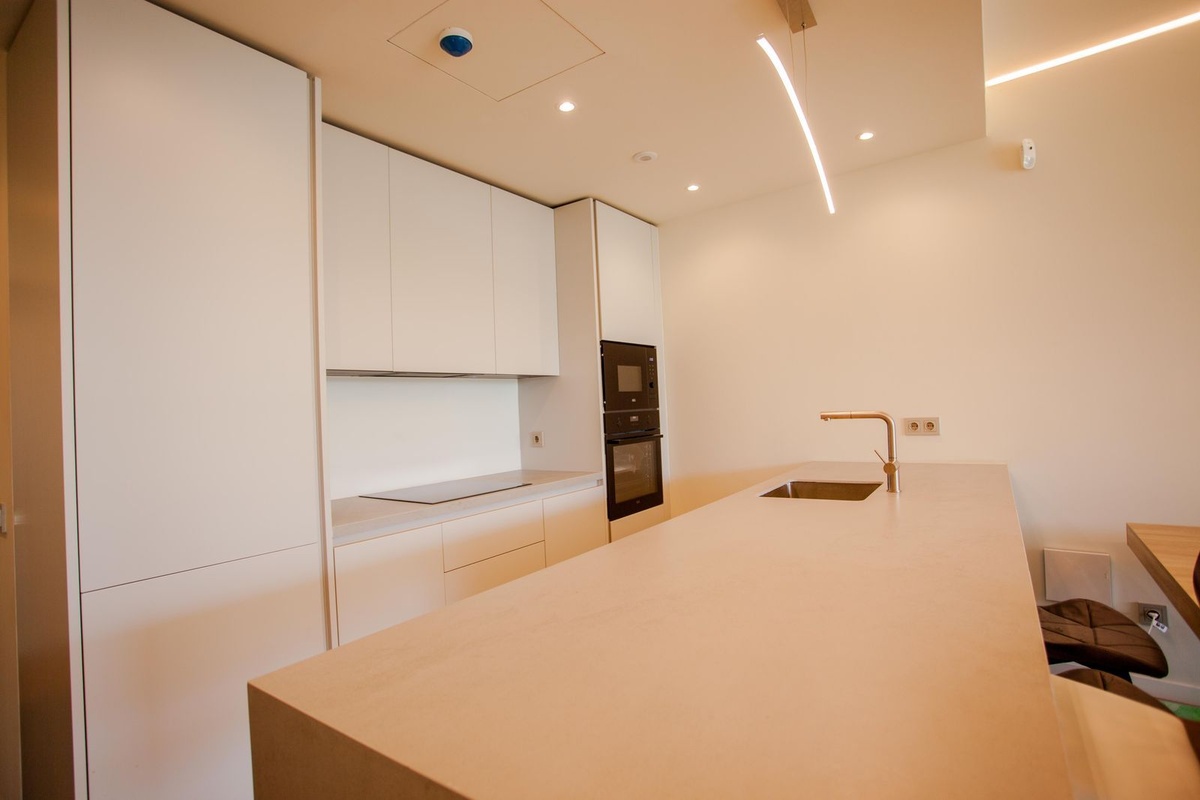 Desde el momento en que entras, te recibe una luminosa sala de estar y comedor de concepto abierto, conectada perfectamente a una amplia terraza donde puedes relajarte, cenar o simplemente disfrutar del sol mediterráneo. La cocina está completamente equipada con electrodomésticos de última generación, complementada con un cuarto de servicio con almacenamiento adicional, una lavadora y una secadora independiente.