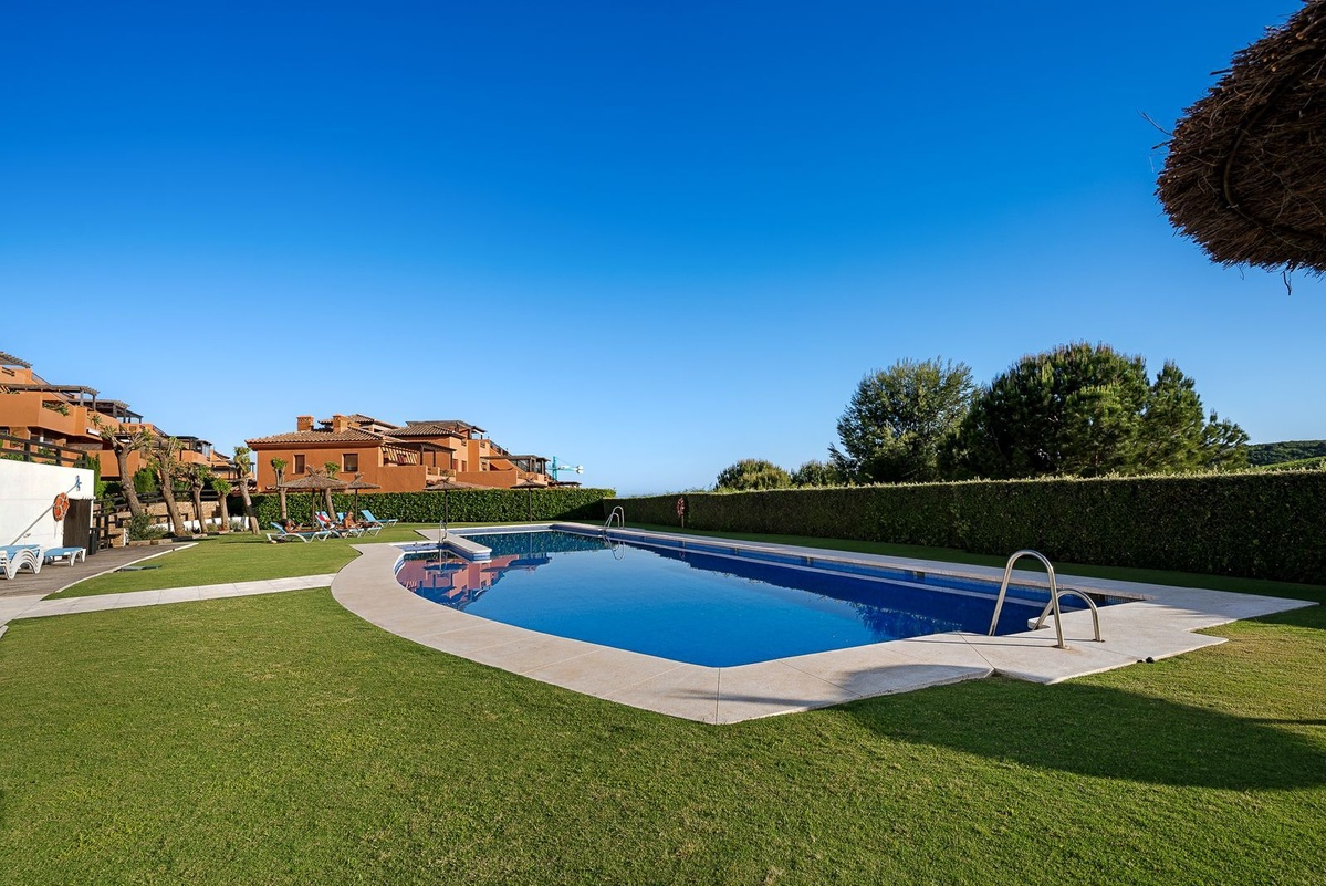 El exterior de la vivienda cuenta con un increíble y cuidado jardín de más de 165 m², ideal para disfrutar del clima mediterráneo y las actividades al aire libre, además de una terraza cubierta de 50m² perfecta para relajarse y disfrutar de las impresionantes puestas de sol. La propiedad se encuentra en una lujosa urbanización con varias piscinas, una de ella de agua salada, y además posee tanto gimnasio privado como pista de pádel y spa.
