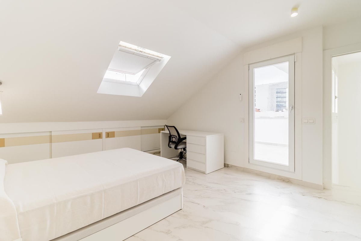 Planta superior: La planta superior cuenta con otra generosa habitación doble en suite, que se abre a una terraza privada de 14m². Desde aquí, se puede disfrutar de espectaculares vistas sobre el pintoresco casco antiguo de Estepona, ideal para relajarse o entretenerse mientras se empapa de la belleza del entorno.