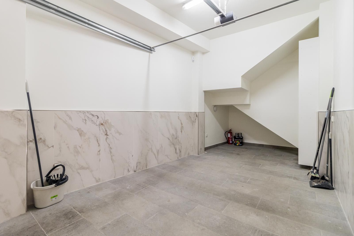 Planta baja: Al entrar, le da la bienvenida una amplio salón-comedor de planta abierta que fluye a la perfección en una cocina de última generación, ideal tanto para el entretenimiento y la vida cotidiana. En esta planta también hay un aseo de invitados. Desde el salón se accede directamente al garaje, con espacio para un coche y un pequeño trastero.