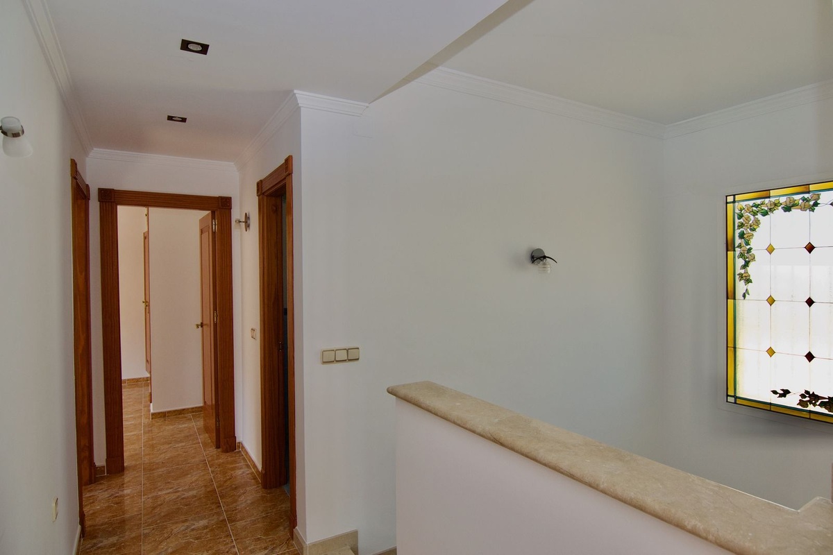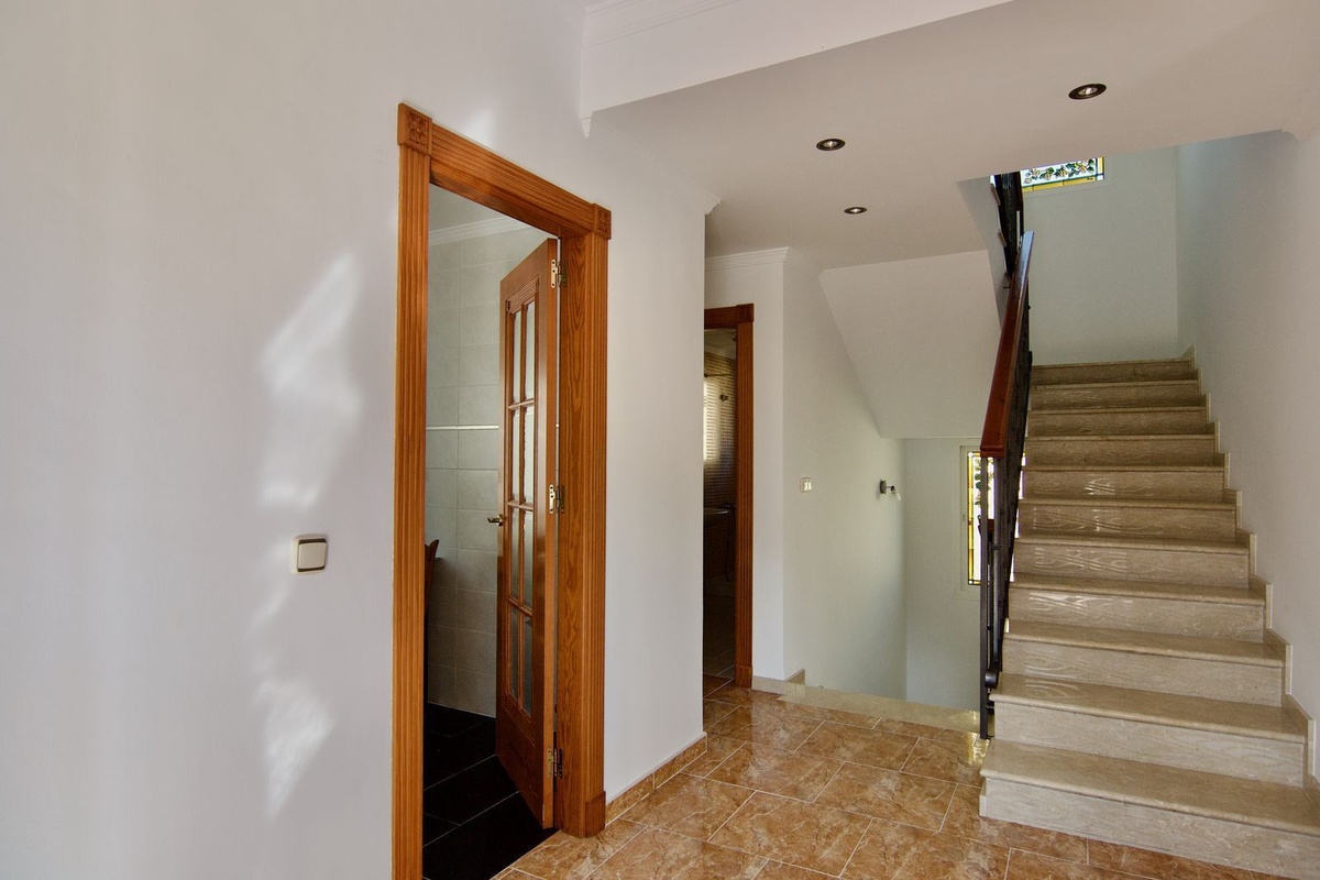En la primera planta podemos disfrutar de 2 habitaciones amplias, un baño completo y una master suite de mas de 30 m2 con vestidor, baño completo y una gran terraza, con preciosas vistas a la propiedad, montaña y la bahía de Málaga.
