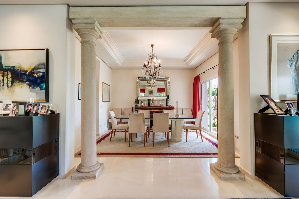 Welcome to this outstanding classic-style villa, located in the heart of the exclusive Rocio de Nagüeles – one of the most sought-after areas in Marbella. Here, you get the best of both worlds: tranquility and privacy, while still being just a short drive from the city's vibrant life and amenities. With its optimal south-facing orientation, the house is bathed in natural light throughout the day and is surrounded by a lush garden that seamlessly blends with the natural surroundings. From the upper floor, you can also enjoy breathtaking views of the sea and mountains.
