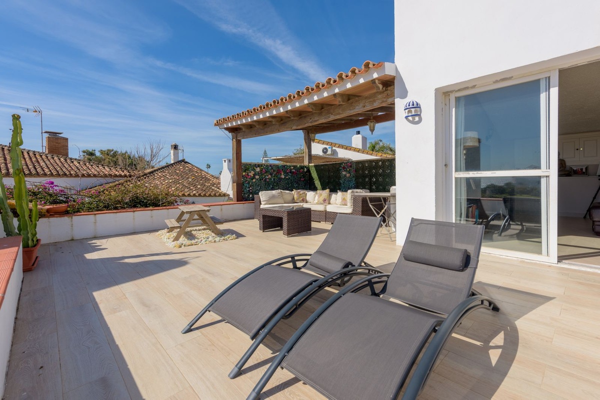 Bien posicionada, casa adosada de tres habitaciones en venta en Bahía Dorada, frente a la playa en el lado oeste de Estepona.