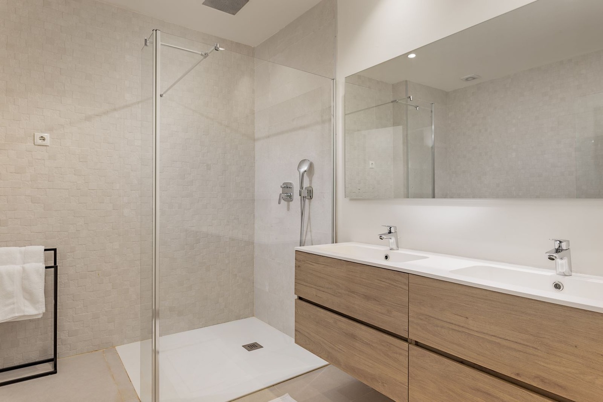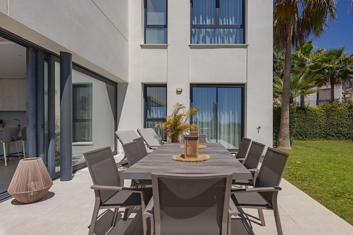 Toda la planta baja integra la vida interior y exterior, con acceso directo a la terraza y jardín privado donde se pueden apreciar preciosas vistas panorámicas al mar y a la montaña.