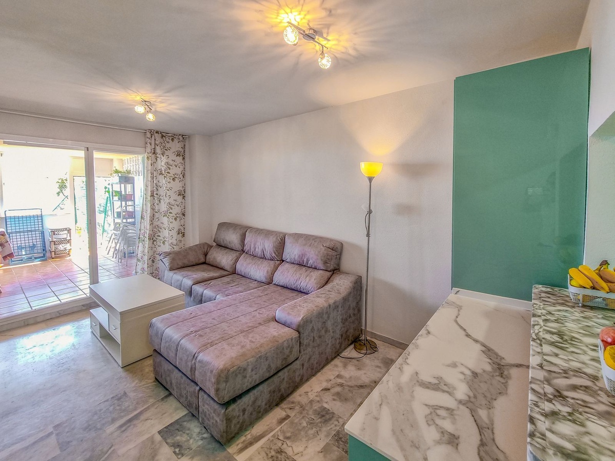The living room is bright and leads to a covered large terrace with stunning sea views, that is currently used as sun room, but could be transformed into a second living space or even an office.