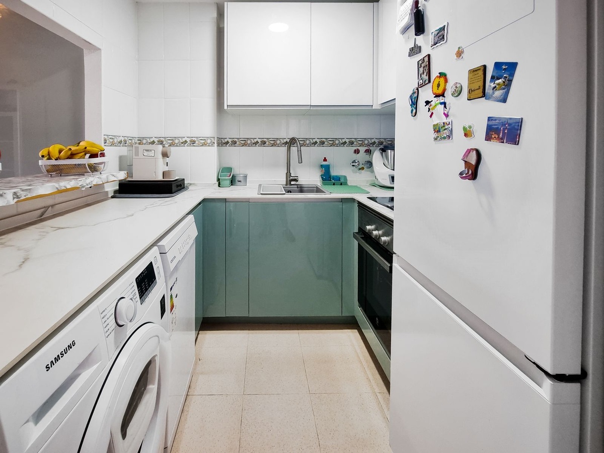 The master bedroom has its own en-suite bathroom with bathtub and the second bedroom has a full family bathroom next to it. Both bedrooms have fitted wardrobes and there is marble floors throughout the entire house.