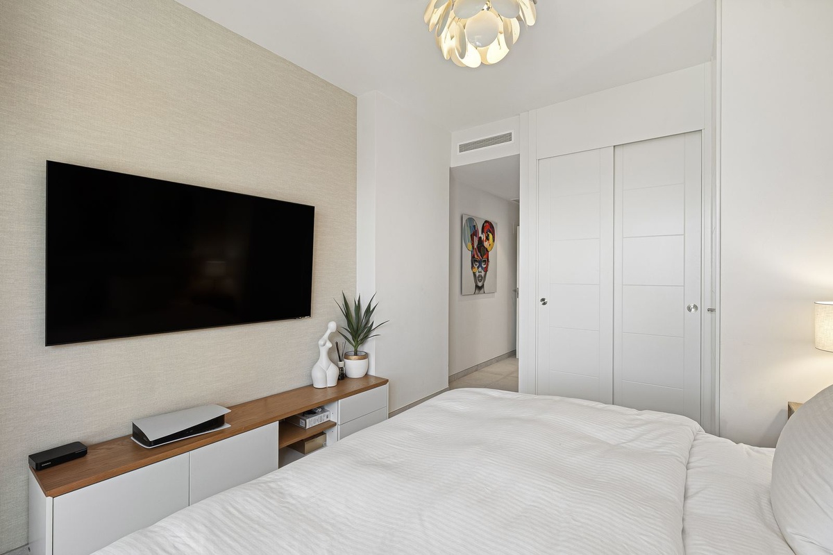 El apartamento cuenta con dos amplios dormitorios, cada uno diseñado con relajación en mente, y dos elegantes baños terminados con accesorios de alta calidad y toques de diseño. La zona de estar y comedor de planta abierta fluye perfectamente en una cocina elegante y totalmente equipada, perfecta para entretener o relajarse en estilo.