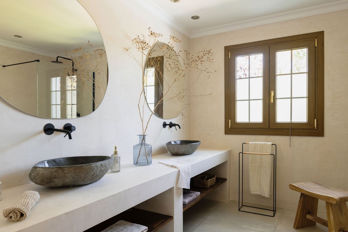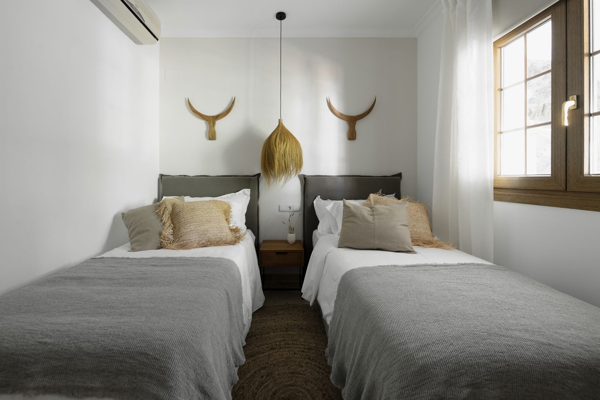 Los cinco dormitorios, todos con baños en-suite, ofrecen un alojamiento lujoso y confortable. Además, hay dos áreas al aire libre ideales para el ocio y la relajación, incluida una zona junto a la piscina con cómodas hamacas y un exuberante jardín privado.