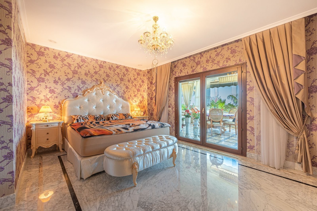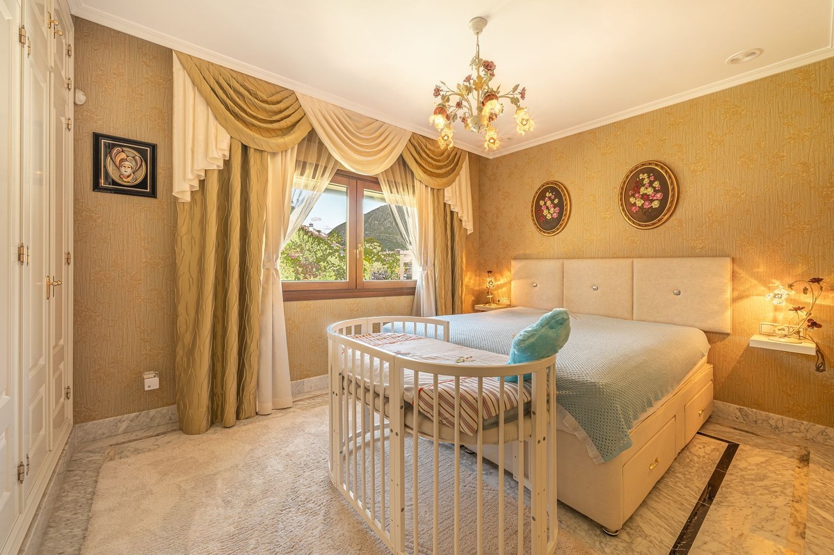 La propiedad ofrece 4 dormitorios de generosas dimensiones, todos con baños en suite, y un luminoso salón que se abre a una gran terraza orientada al sur con vistas al mar. La terraza también es accesible desde el dormitorio principal y desde un segundo dormitorio que actualmente se utiliza como oficina.