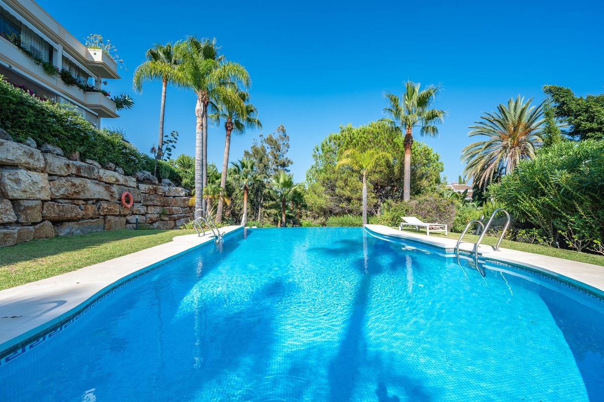 Este amplio apartamento se encuentra en una exclusiva urbanización en Las Lomas del Marbella Club, en la prestigiosa Milla de Oro de Marbella — a solo 2 minutos de Puente Romano y la playa.