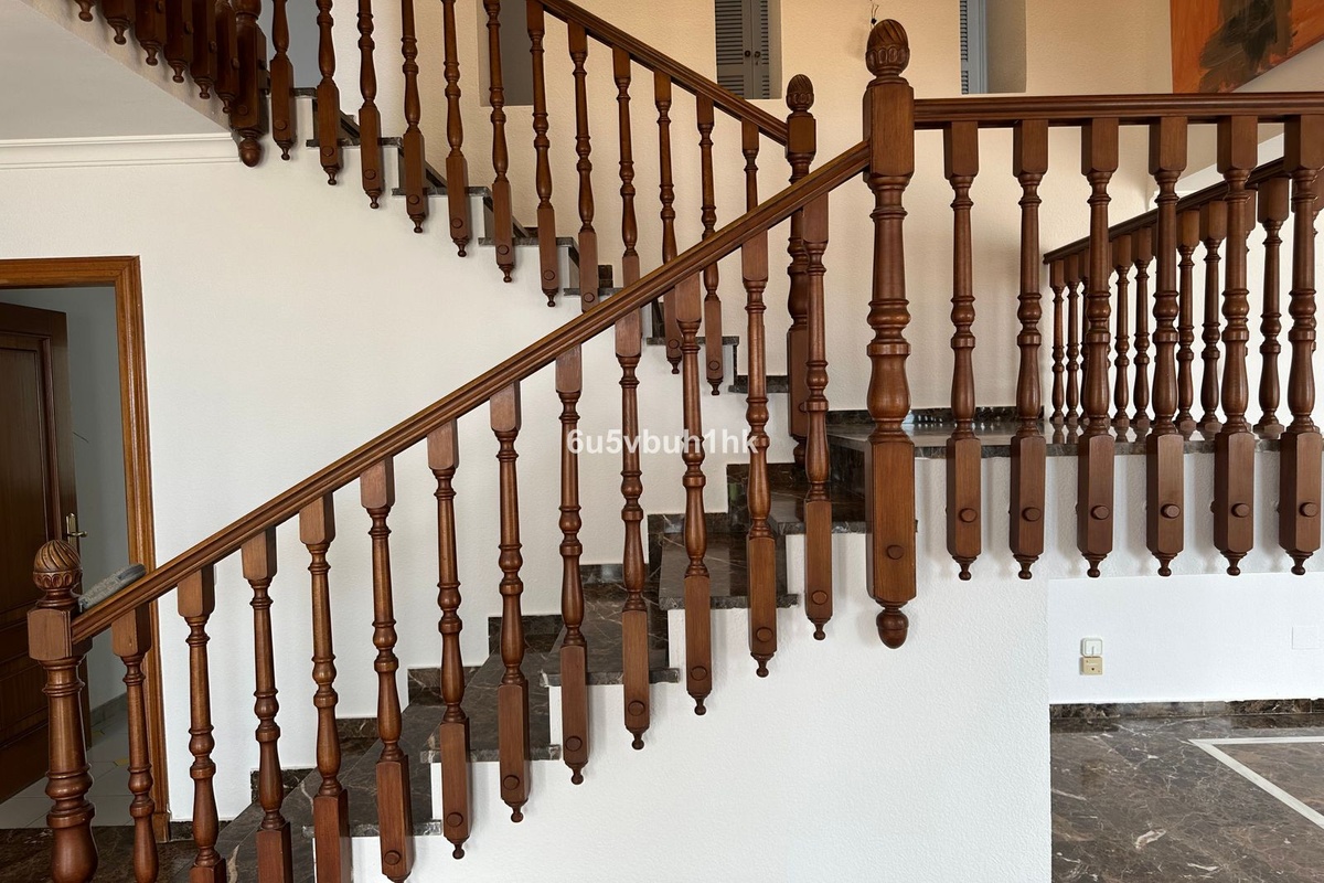 Una llamativa escalera abierta, en voladizo sobre el piso principal y complementada con una balaustrada de madera barnizada, conduce al nivel superior.