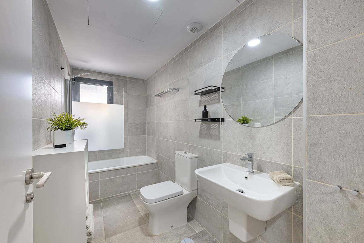 El apartamento tiene una superficie construida total de 98 m², con 84 m² de espacio interior útil. En el interior, encontrará un luminoso salón-comedor de planta abierta con acabados modernos y grandes ventanales. La cocina está integrada en el espacio de estar, ofreciendo una distribución práctica para la vida diaria y el entretenimiento. Hay dos dormitorios de buen tamaño, cada uno con su propio baño en suite para mayor privacidad y comodidad. Dos aseos adicionales también proporcionan comodidad extra para familias e invitados. El salón se abre a una terraza, un lugar ideal para relajarse o disfrutar de una comida al aire libre en el cálido clima de Estepona. Entre las características adicionales se incluyen ventanas de doble acristalamiento y un sistema de videoportero.