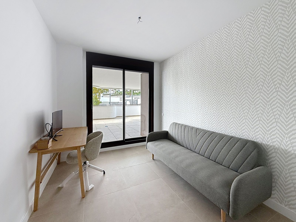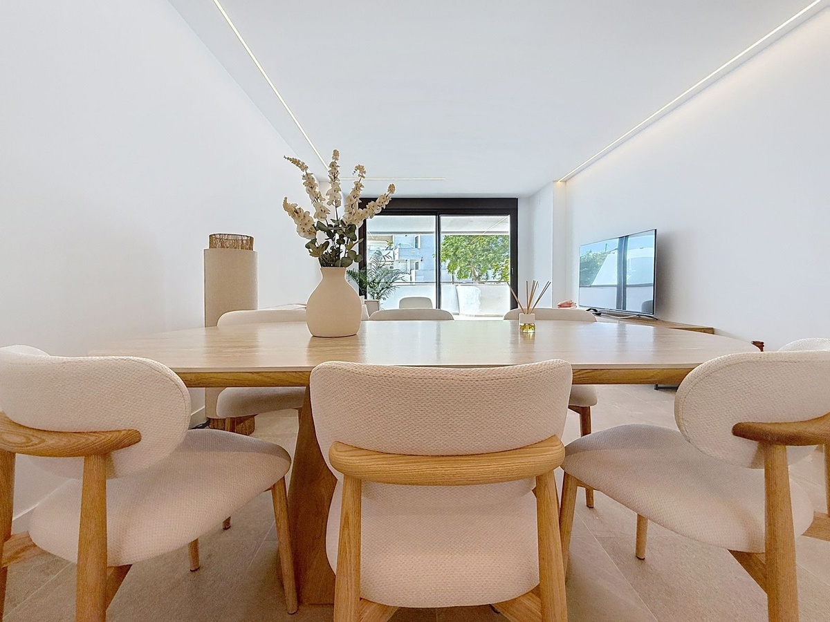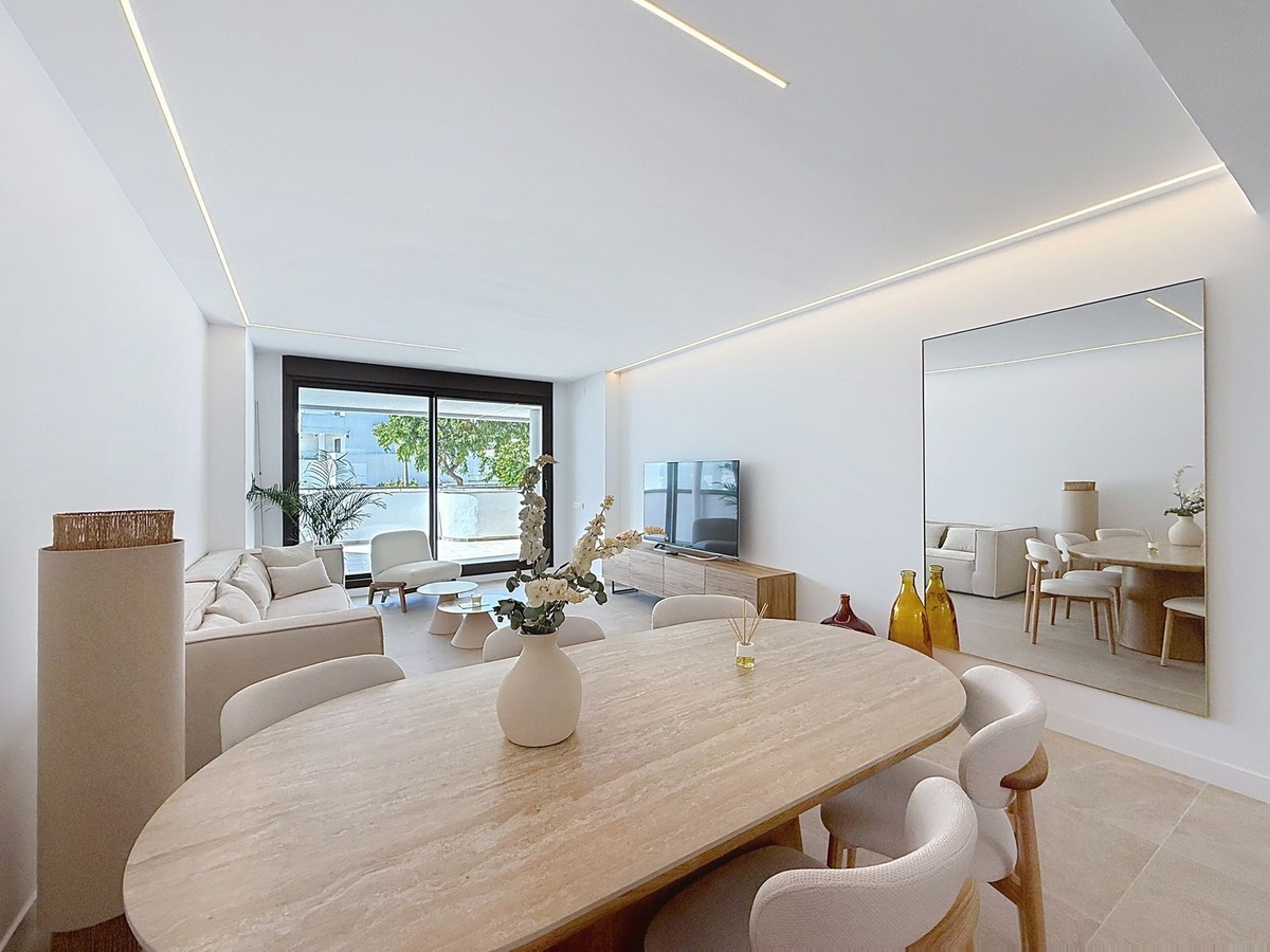 Moderno y elegante apartamento en planta baja elevada con orientación ideal y vistas laterales al mar desde su impresionante terraza privada de 90 m². Ubicado en la zona alta de Las Mesas, a solo 10 minutos caminando del Puerto Deportivo de Estepona y 20 minutos del casco antiguo.