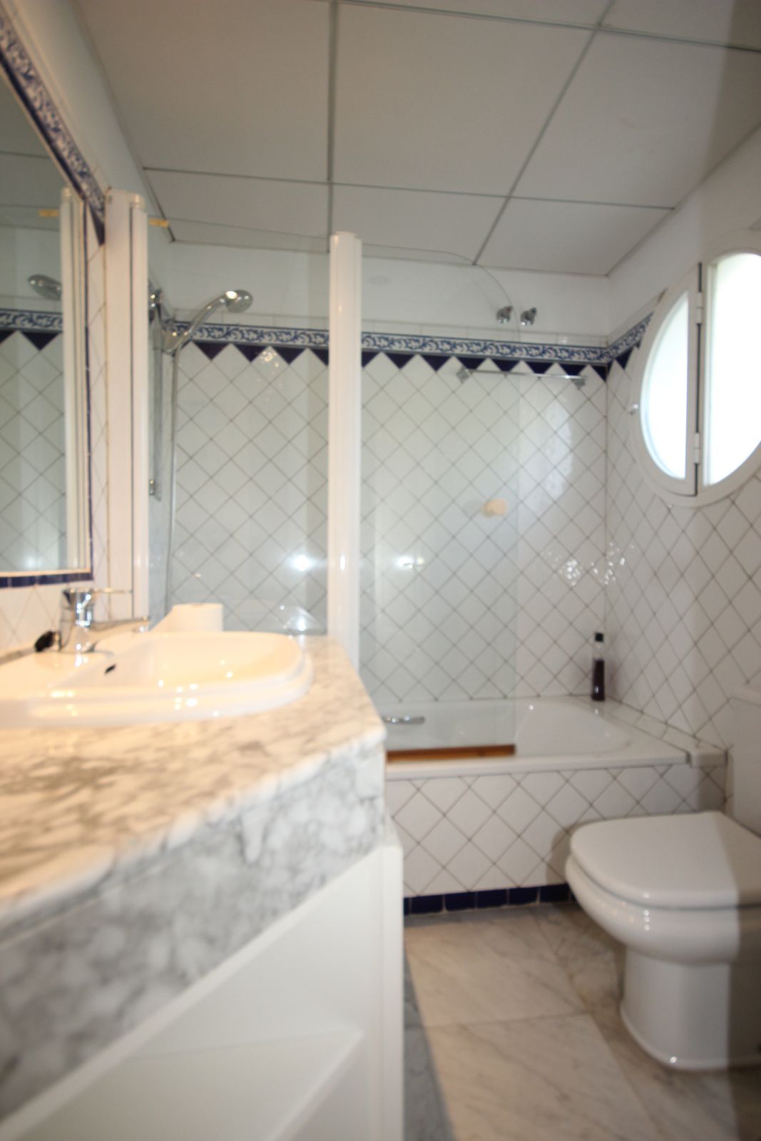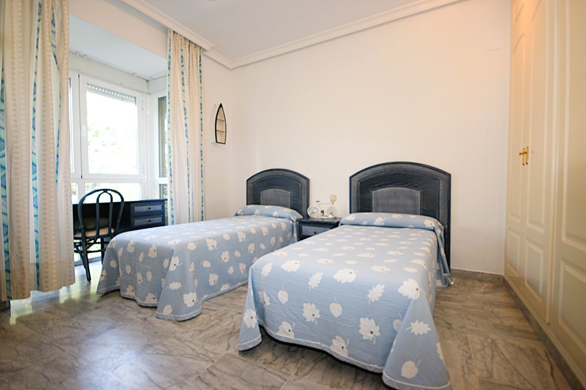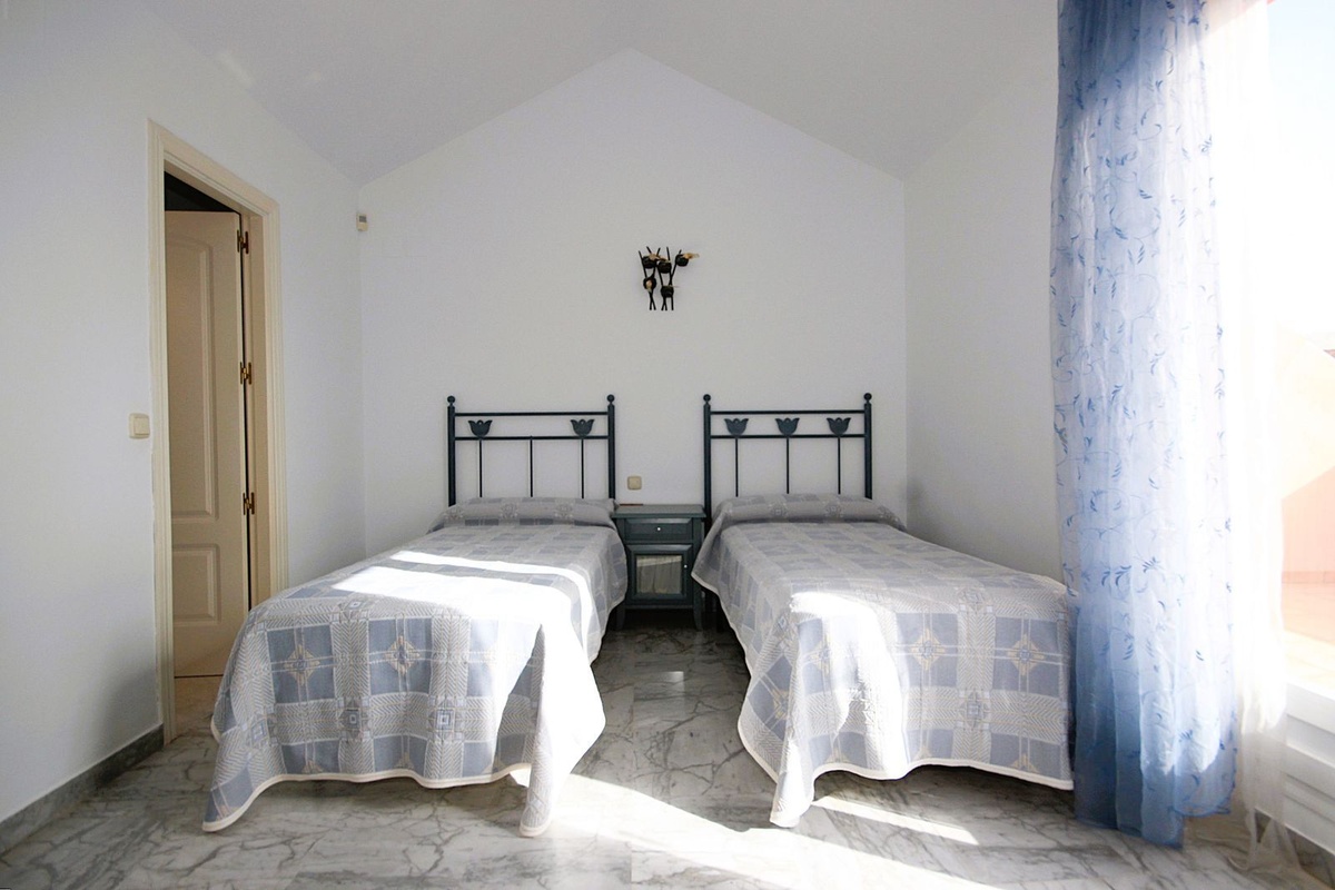 Enclavada en una de las urbanizaciones frente al mar más codiciadas de Bahía de Marbella, esta impresionante casa adosada ofrece una experiencia de vida costera sin igual. Imagínese despertarse con el sonido de las olas y tener acceso directo y privado a las arenas doradas de la playa a pocos pasos de su puerta. Esta exclusiva comunidad proporciona tranquilidad con seguridad las 24 horas, garantizando un entorno seguro y sereno para usted y su familia. Los exuberantes jardines meticulosamente cuidados crean un oasis vibrante, complementado por una piscina extraordinariamente grande y hermosa, perfecta para chapuzones de ocio en los cálidos días mediterráneos.