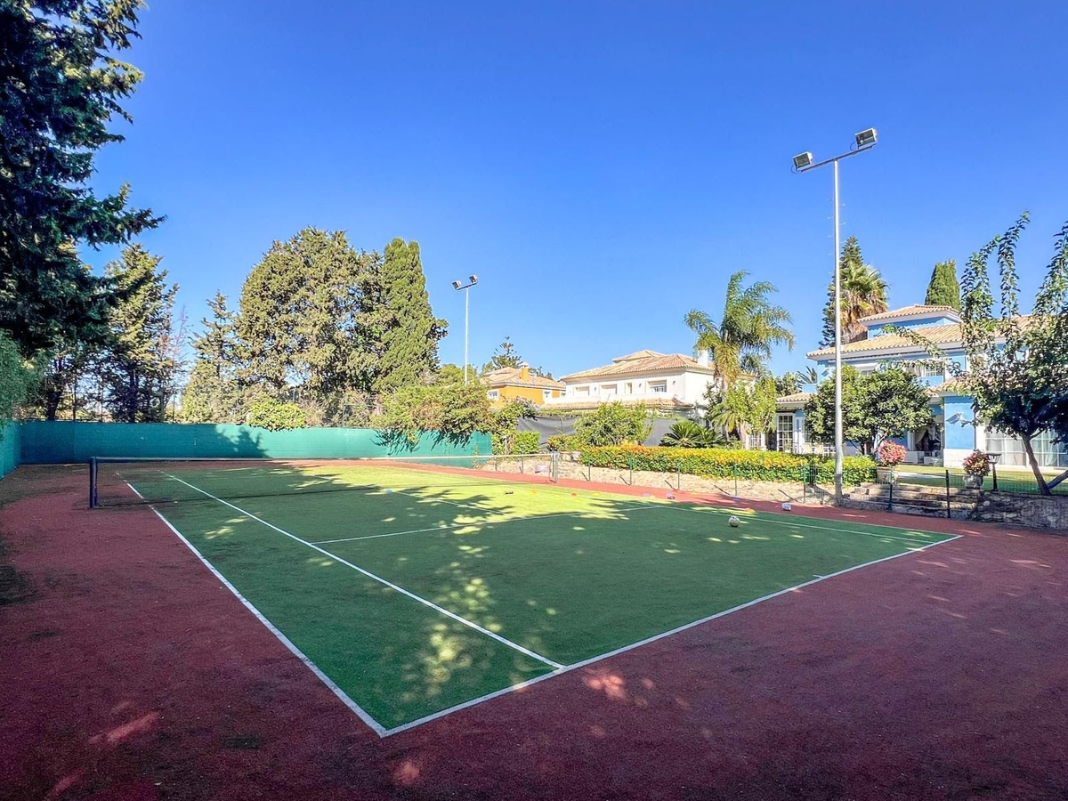 Construida sobre una parcela de 1.690 m², esta villa independiente cuenta con una pista de tenis privada de tamaño profesional, jardín cuidado y una espectacular piscina. Diseñada con materiales de alta calidad y líneas elegantes, ofrece una vida tranquila y lujosa a tan solo 5 minutos de Puerto Banús, cerca de campos de golf, colegios internacionales y restaurantes exclusivos.