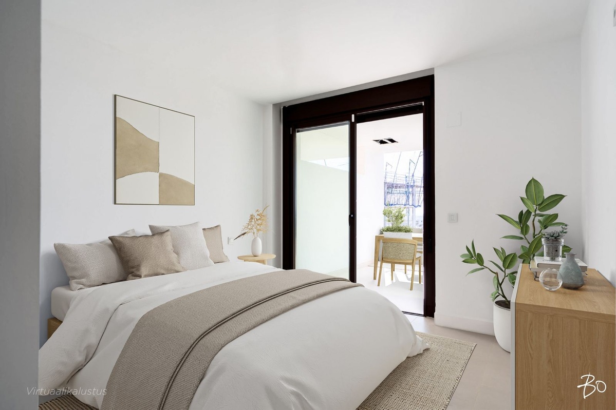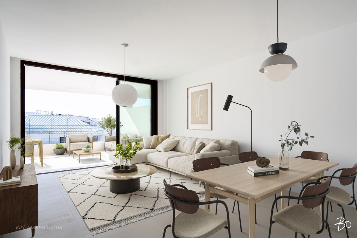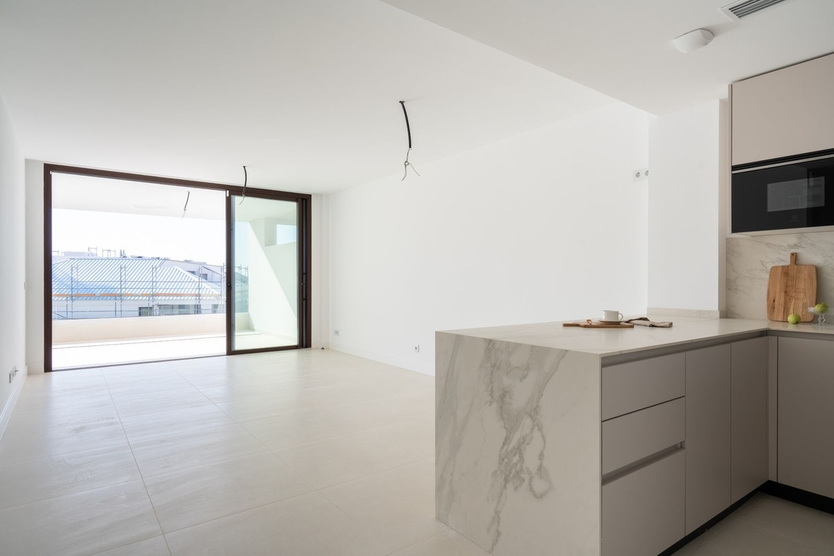 Este moderno apartamento en segunda planta ofrece dos dormitorios dobles, dos baños completos y un luminoso salón de planta abierta con vistas al mar. Incluye dos plazas de garaje subterráneas y un trastero para mayor comodidad.