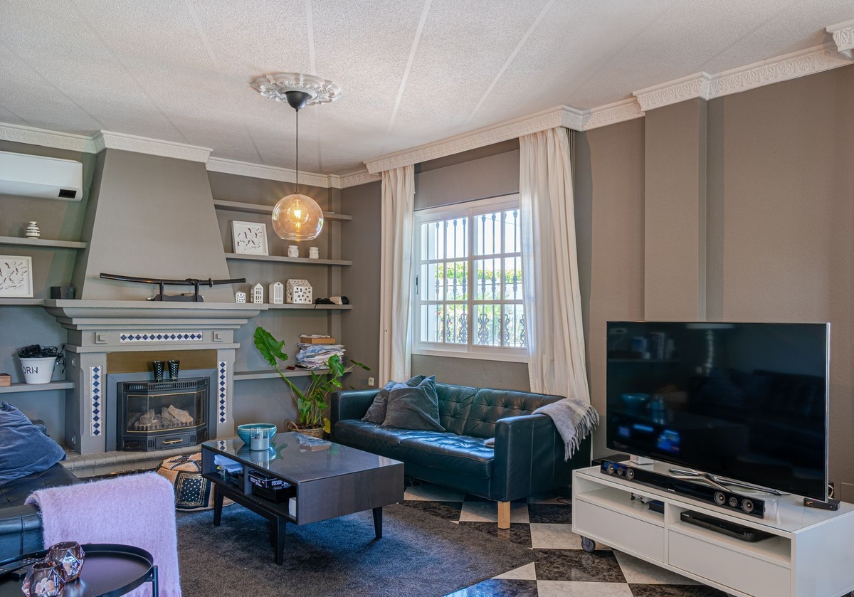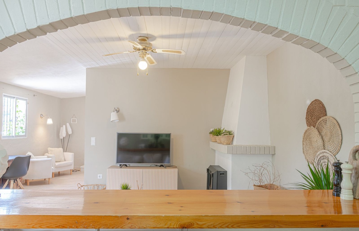 La villa dispone de seis dormitorios y tres baños, incluyendo un apartamento de invitados independiente, lo que la convierte en una opción perfecta tanto para familias numerosas como para quienes deseen recibir visitas con total comodidad. El salón principal cuenta con chimenea, proporcionando un ambiente acogedor, y se conecta con un comedor espacioso y una cocina totalmente equipada y amueblada. Además, la propiedad ofrece una terraza privada y una terraza cubierta, ideales para disfrutar de las vistas al campo, la montaña, el jardín y la piscina.