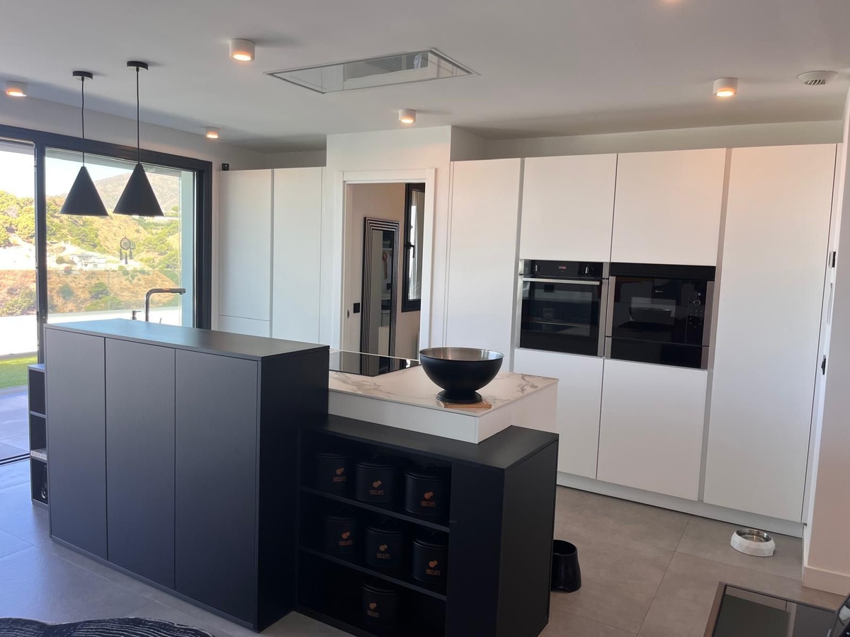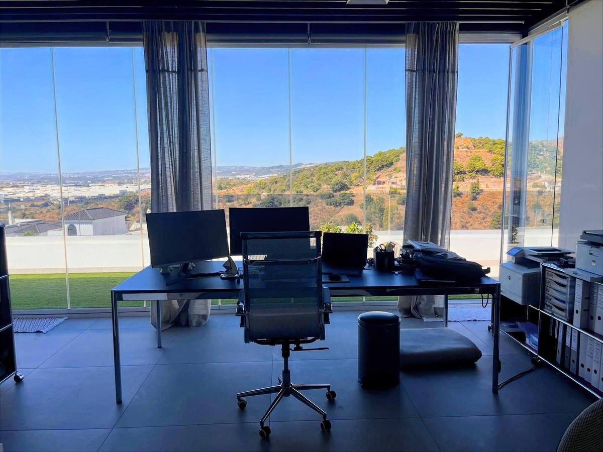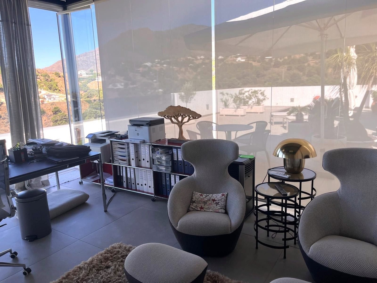 Desde la cocina se accede a un amplio despacho que conecta con una terraza privada, ideal para instalar un jacuzzi o una plunge pool, con vistas privilegiadas a la Sierra Bermeja.