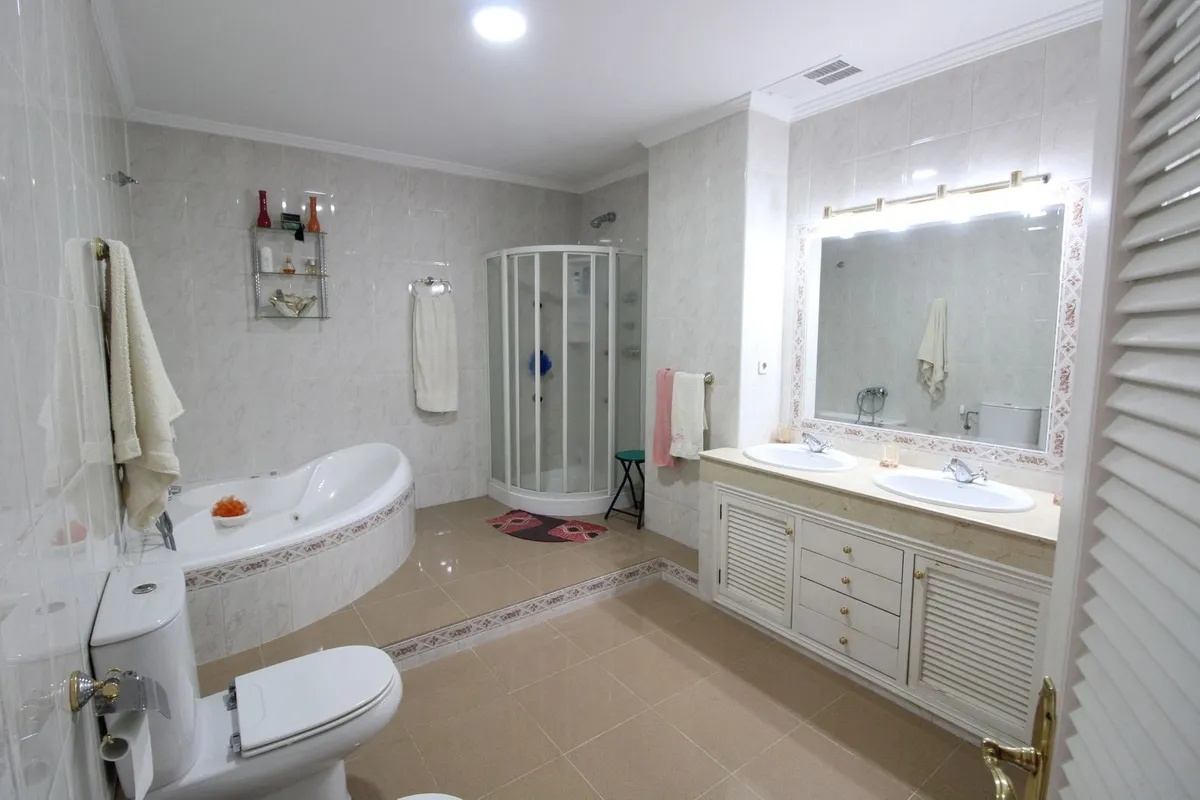 La Campana area in Nueva Andalucia is a thriving community with a vast array of amenities. Offered for sale is this house situated walking distance from all local services. The property enjoys far reaching views towards the sea and the spacious accommodation distributed on two floors comprises 4 bedrooms, two bathrooms and guest toilet, an open plan kitchen/dining and lounge area a further sitting room with an open fire in the lower floor and 3 different terrace areas on both floors. From the terraces you can have views of the mountains and the sea. Other features include, laundry room, off road parking, pantry and air conditioning. MUST VIEW!!