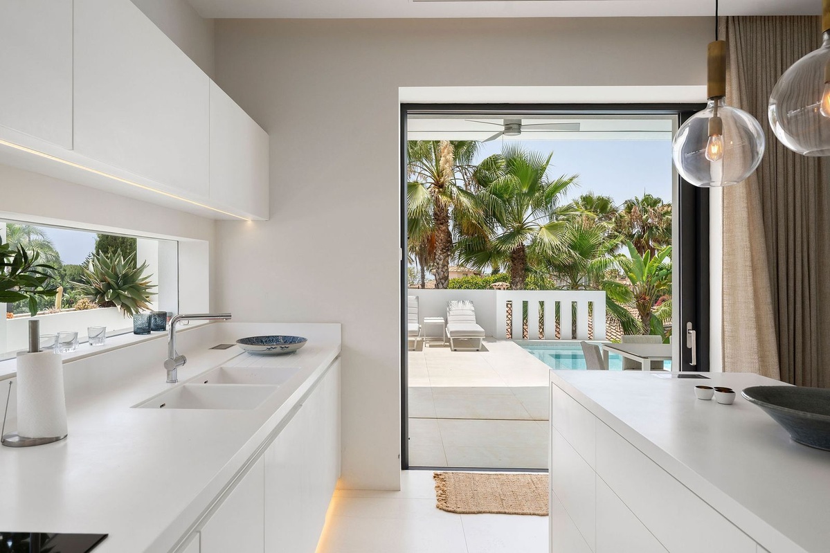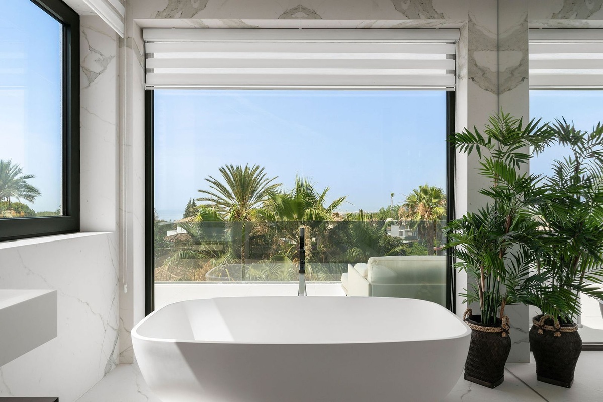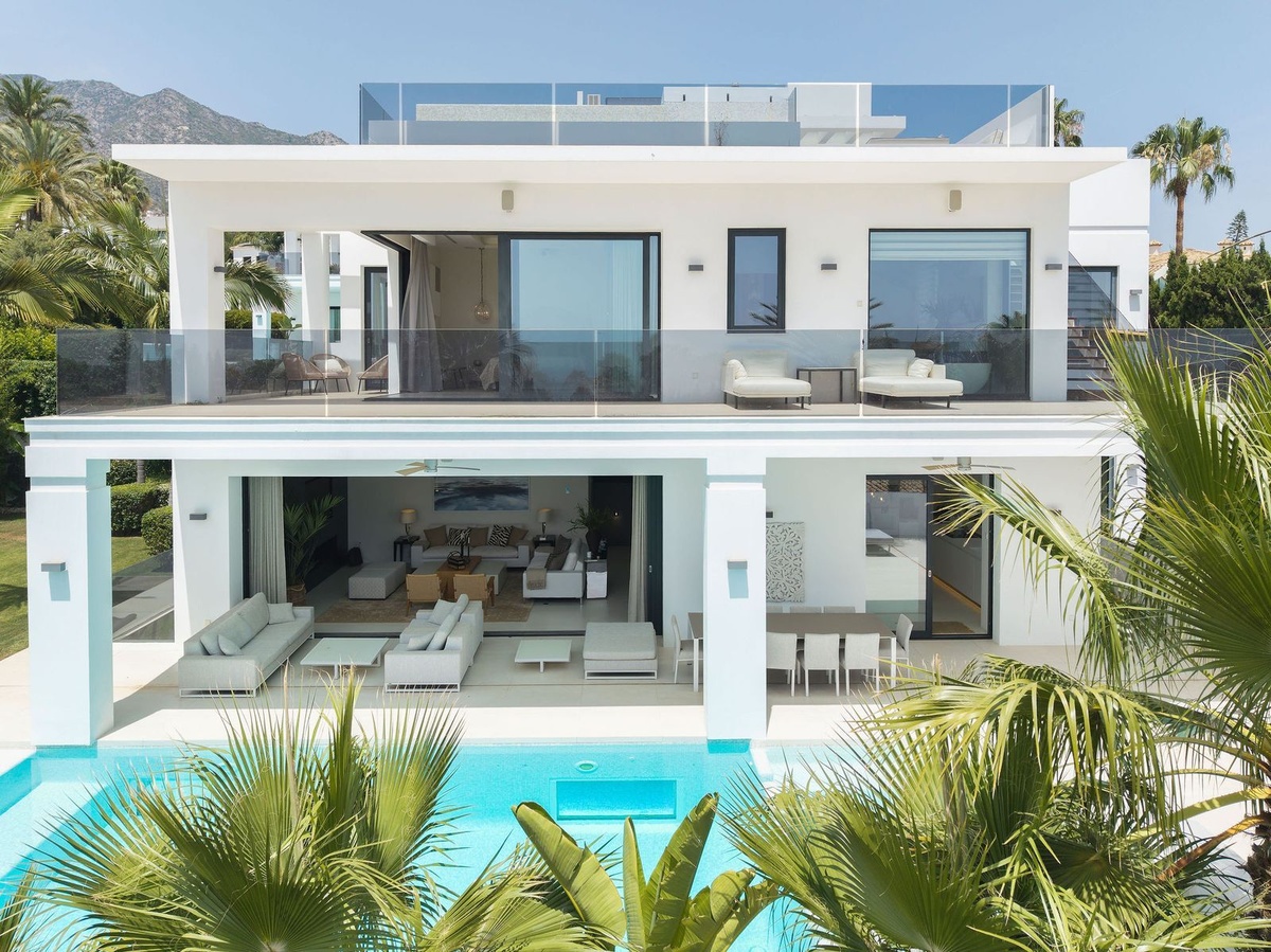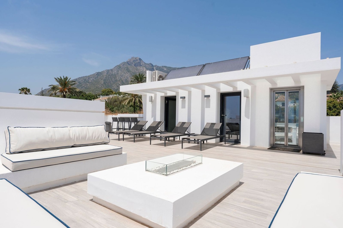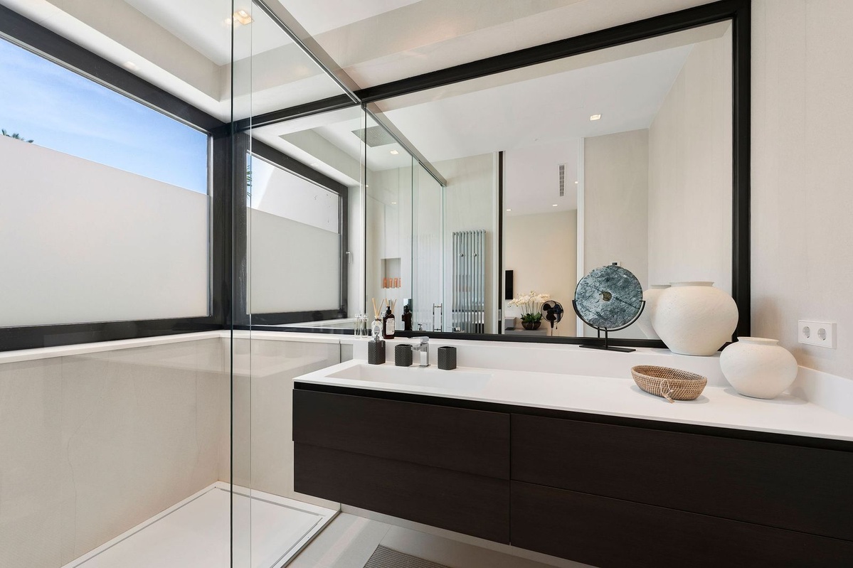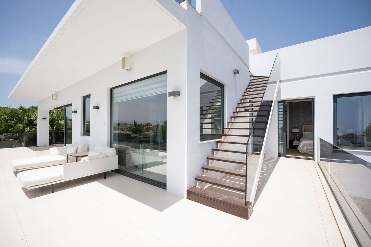 Impresionante villa moderna de lujo en Nagüeles, en la Milla de Oro de Marbella, con fácil acceso al centro de Marbella y a solo 10 minutos en coche de Puerto Banús. La propiedad está construida con las más altas calidades, con gran atención al detalle y utilizando materiales e instalaciones de primera calidad. La villa se distribuye en tres plantas, todas conectadas por ascensor, incluyendo un sótano y una amplia terraza solárium en la azotea. El sótano incluye garaje privado con plataforma giratoria, zona de entretenimiento con sala de TV, un amplio bar, salón, un amplio dormitorio para el personal/invitados con baño en suite, lavadero, aseo de invitados y cuarto técnico. La planta de entrada consta de recibidor, aseo de invitados, un dormitorio en suite, un amplio salón-comedor y una cocina abierta con acceso a la gran terraza que da a la piscina privada. El dormitorio principal se encuentra en la primera planta e incluye un amplio baño en suite y vestidor. Esta planta también incluye un dormitorio en suite adicional. La terraza de la azotea de 98 m² ofrece vistas panorámicas al mar y a la montaña y es ideal para el entretenimiento al aire libre. También incluye una zona de relax, un baño y trastero.