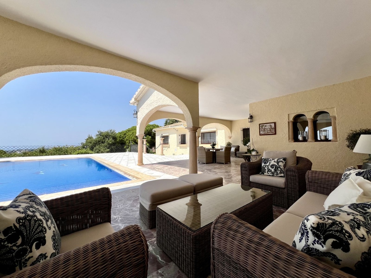 DESCUBRA ESTA CAUTIVADORA VILLA ORIENTADA AL SUROESTE CON VISTAS PANORÁMICAS AL MAR MEDITERRÁNEO.
