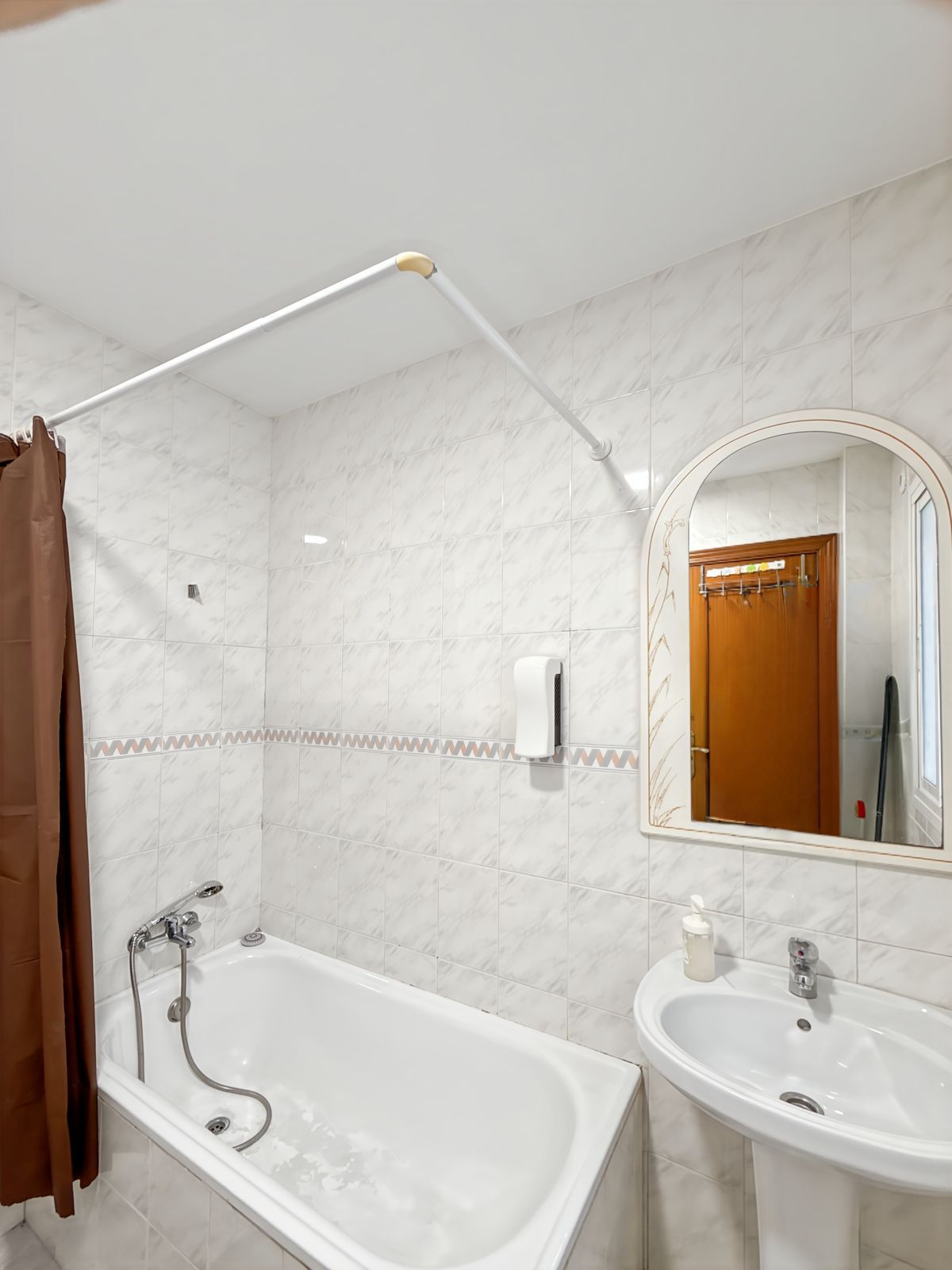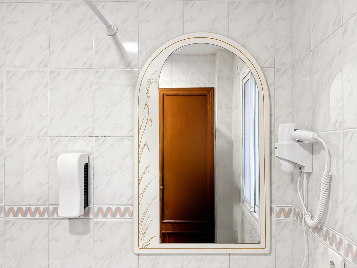 The apartment features a functional layout with high ceilings (2.8 m), west-facing windows, and a calm, bright atmosphere thanks to its orientation towards a quiet interior courtyard — ideal for long-term tenants seeking peace in a vibrant location.