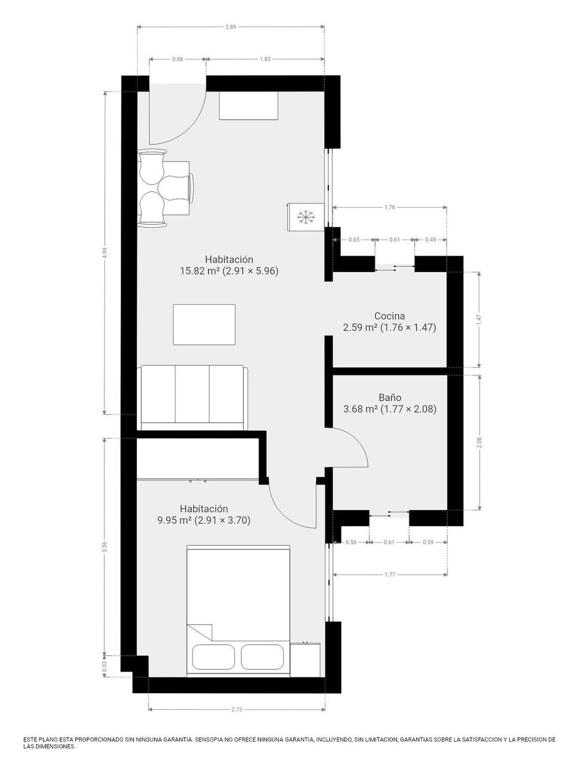 The property offers a bright 16 m² living-dining area, a spacious 10 m² bedroom, a separate 3 m² kitchen, and a full 4 m² bathroom. It is move-in ready, and with minor upgrades, its market value and rental appeal could easily increase.
