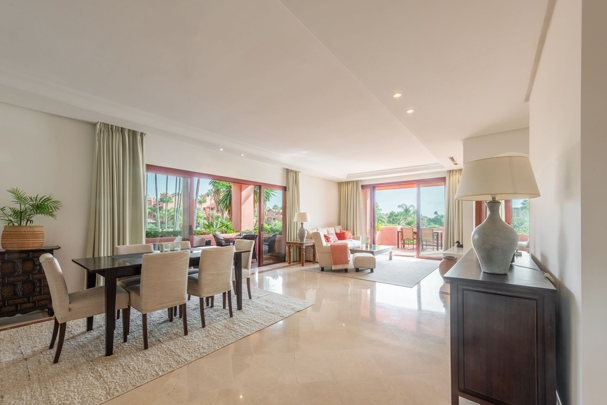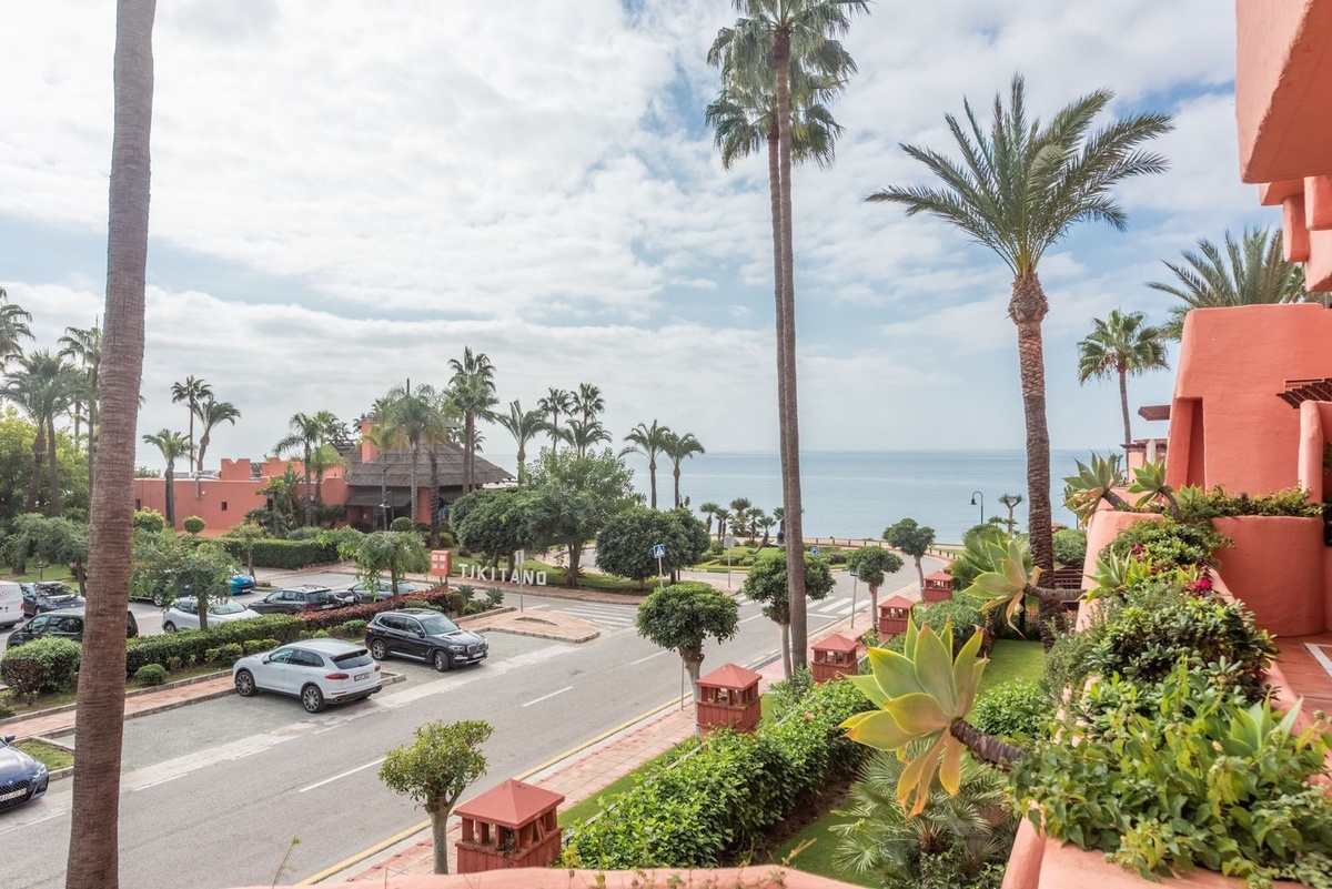 Experimente lo mejor de la vida mediterránea en este extraordinario apartamento en esquina en primera línea de playa, con vistas ininterrumpidas al mar y a la montaña desde una de las urbanizaciones más prestigiosas de la Nueva Milla de Oro de Estepona.