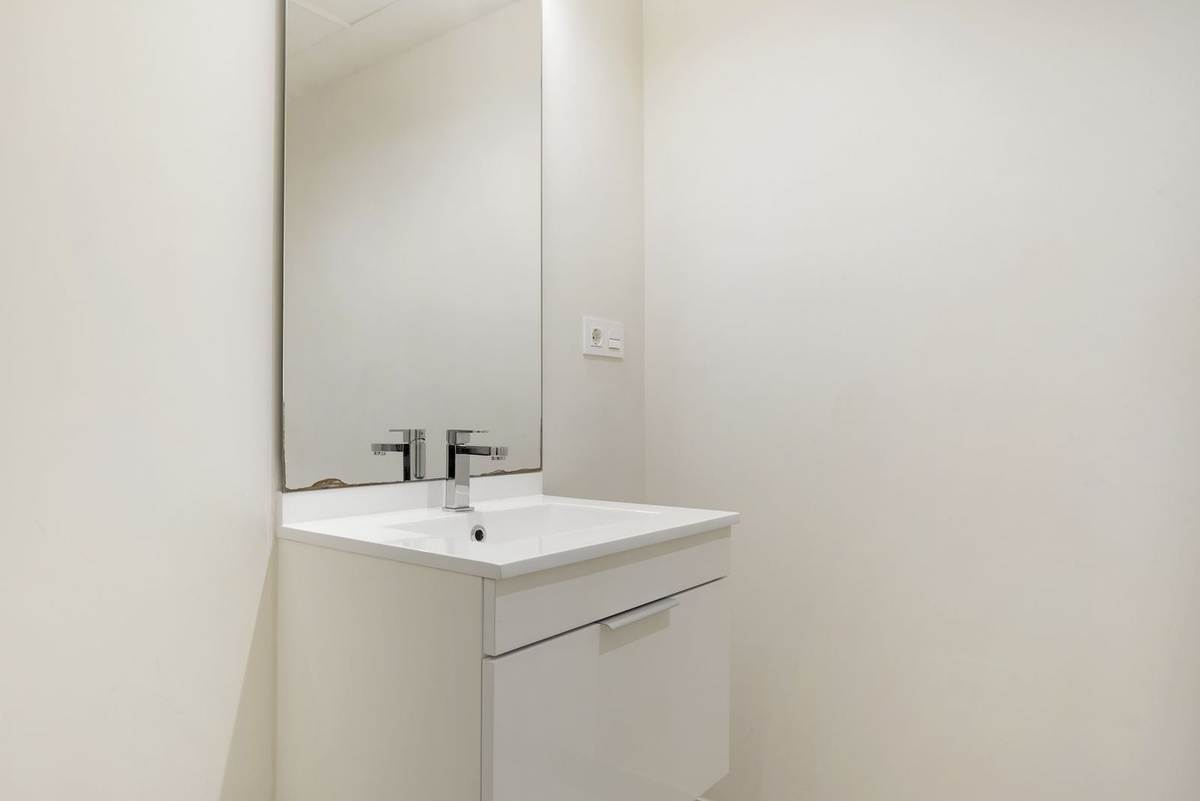 At the front of the apartment is the living room with a lovely open kitchen. From the living room, you can enter the terrace, and beautiful sliding doors that disappear into the wall make the terrace accessible.