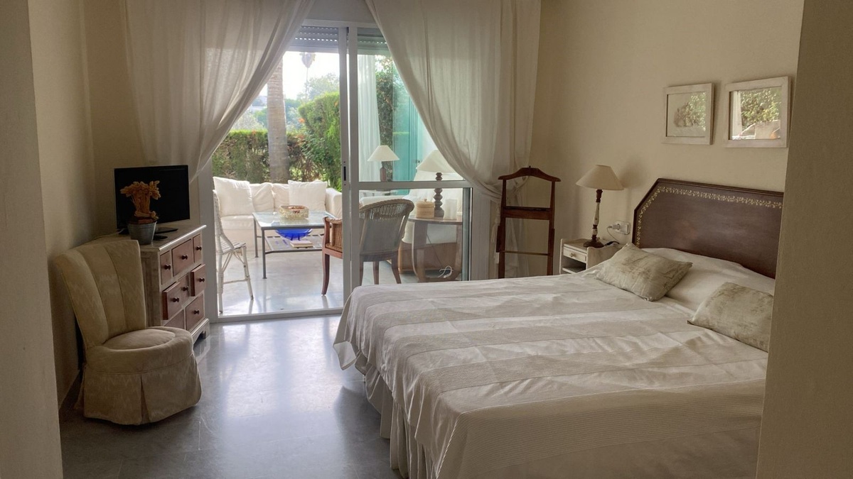 Este espacioso apartamento en planta baja, situado en el prestigioso complejo Hoyo 15 de Guadalmina Baja, cuenta con 3 dormitorios y 3 baños, y ofrece una distribución cómoda para la vida cotidiana. Totalmente amueblado, incluye un jardín privado vallado con vistas directas al campo de golf, lo que crea un tranquilo espacio al aire libre. La propiedad se encuentra a poca distancia a pie del mar, las tiendas y los servicios locales, lo que combina la comodidad con una ubicación privilegiada. Se trata de una vivienda segura y bien comunicada, una excelente opción para vivir a largo plazo en una de las zonas más deseadas de Marbella.