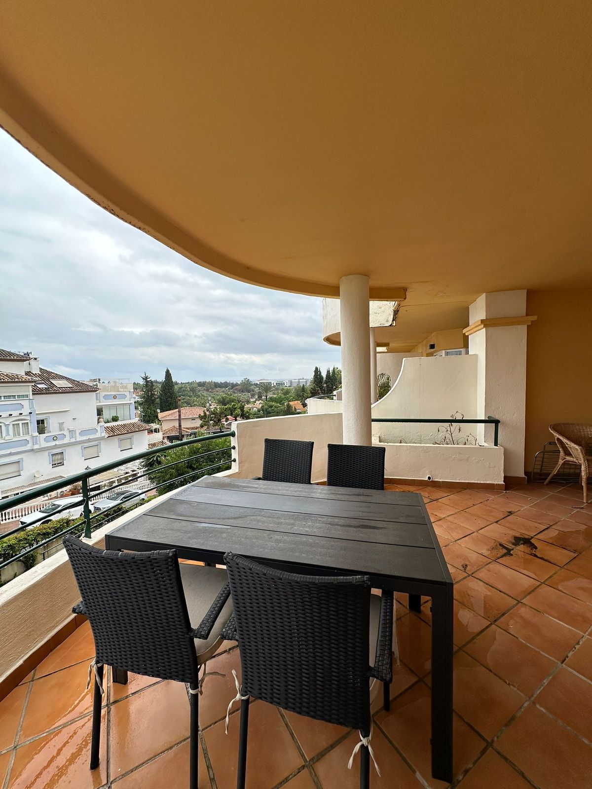 The jewel of this flat is its private terrace, which offers stunning open views of Nueva Andalucía, El Puerto and the sea, ideal for enjoying the balmy Mediterranean nights. The kitchen is fully equipped and has a laundry area. In addition, the building has a reception, several swimming pools and large garden areas that enhance the charm of the place.