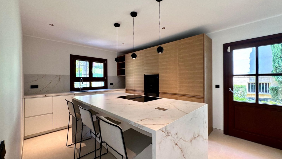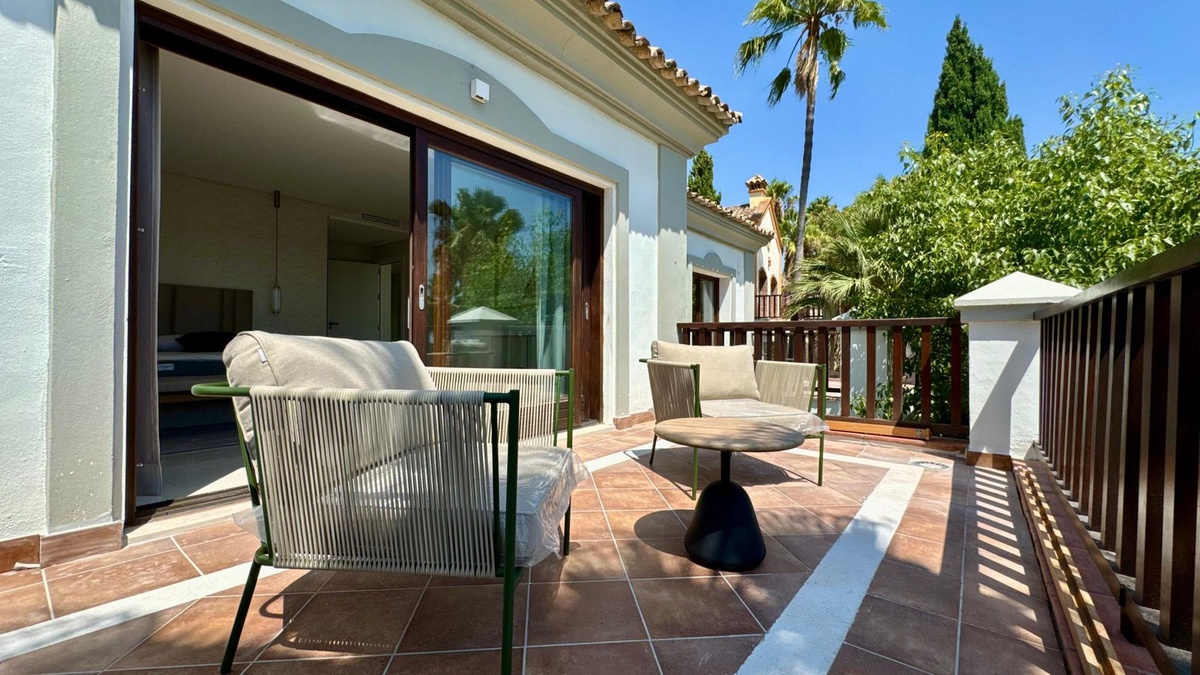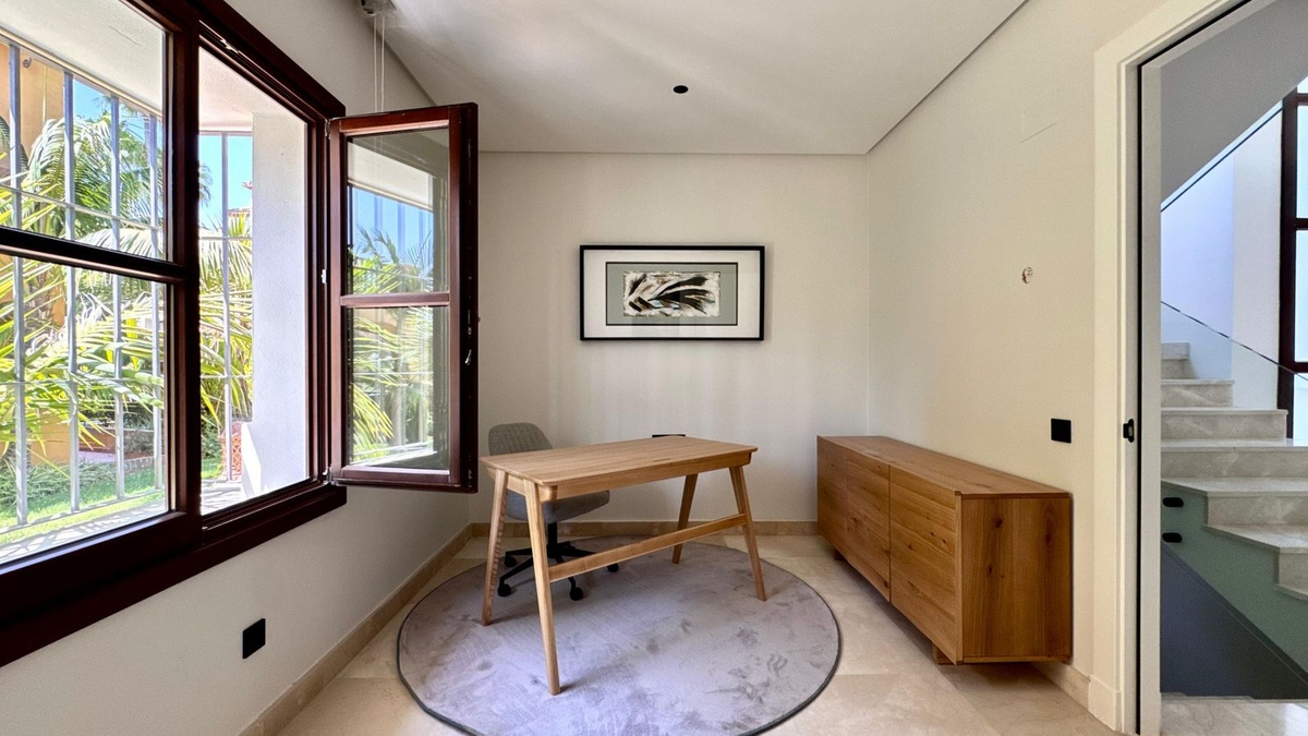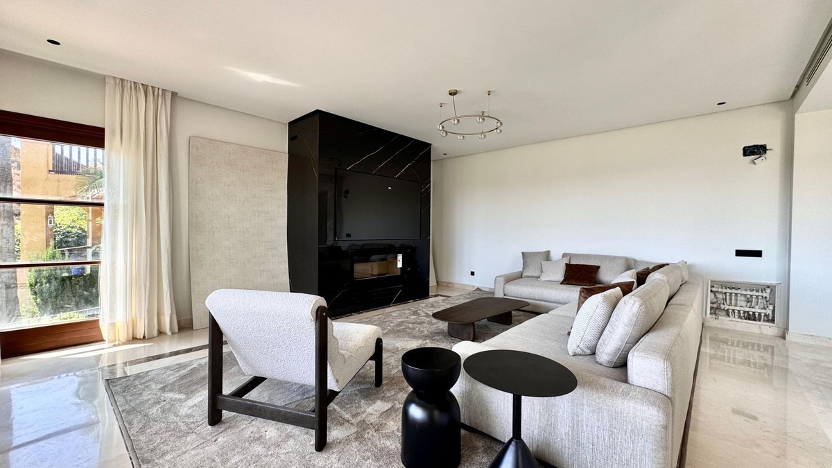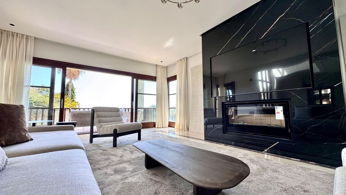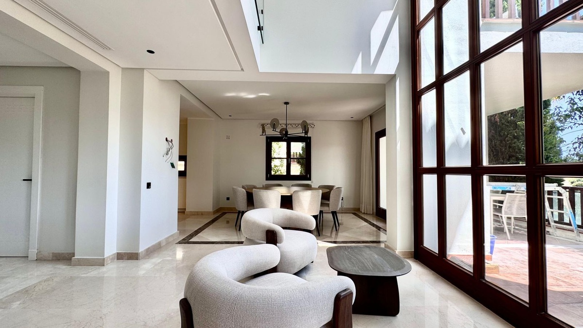 Recién renovada y amueblada, esta exquisita villa está ahora disponible para alquiler a largo plazo en una de las zonas residenciales más prestigiosas de Marbella: la Milla de Oro.