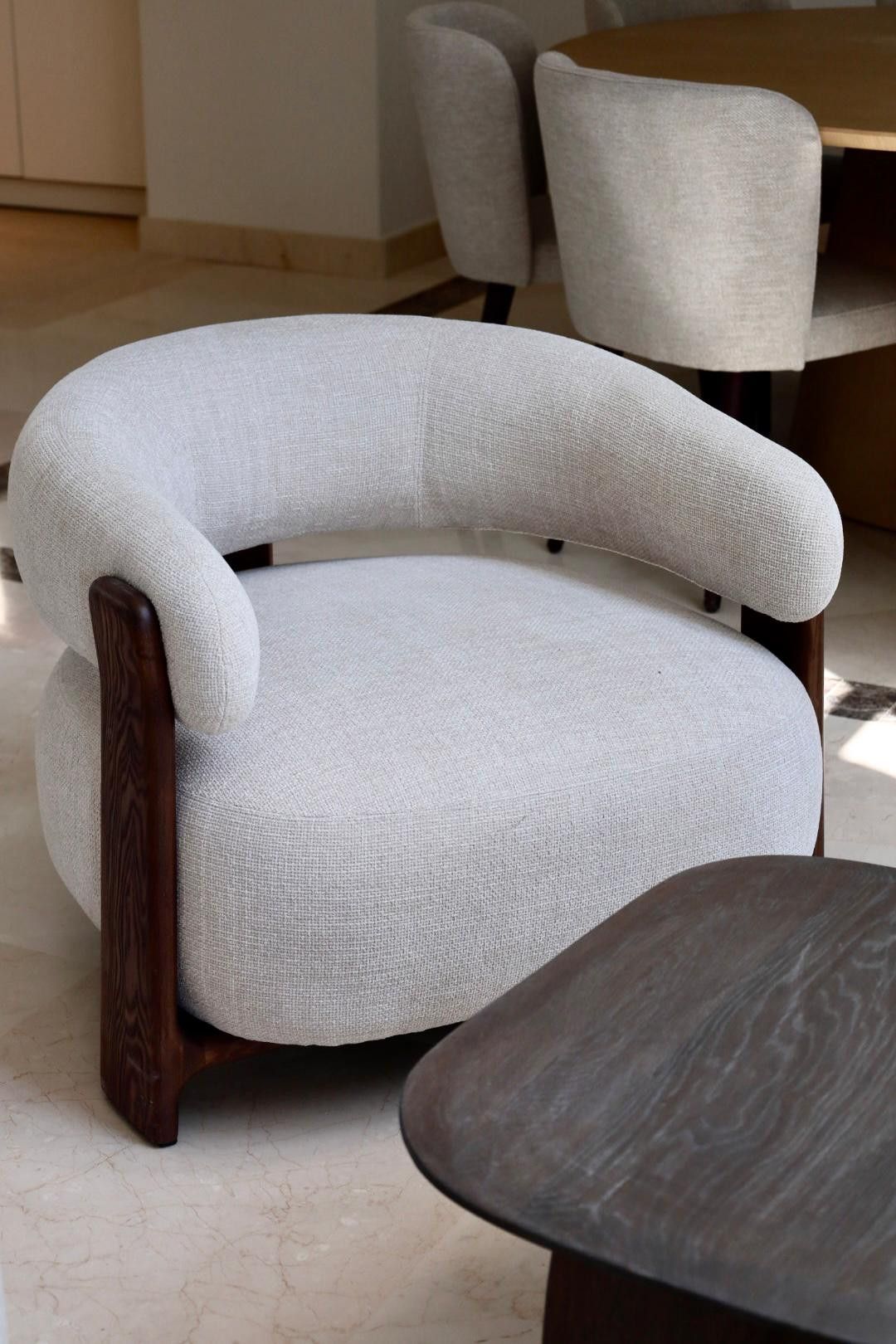 -Elegantes zonas de estar y comedor de concepto abierto, decoradas con mobiliario de diseño completamente nuevo