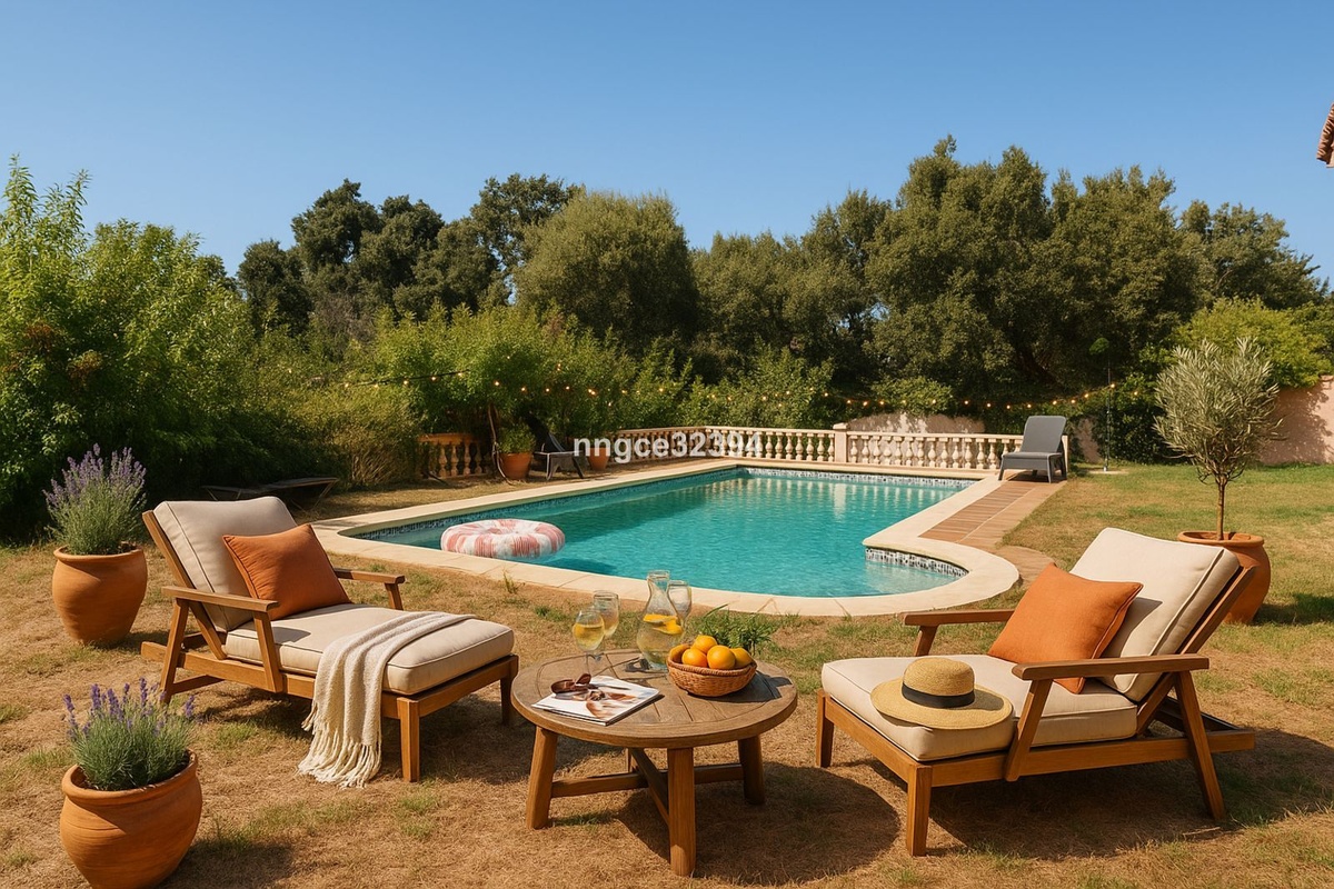El jardín trasero es la joya de la propiedad: un extenso refugio ajardinado con imponentes cipreses a un lado y vistas abiertas al paisaje, una piscina de estilo italiano clásico y amplias terrazas para disfrutar al aire libre durante todo el año. Es un espacio pensado para cenas al fresco, celebraciones de verano o mañanas tranquilas rodeado de naturaleza.
