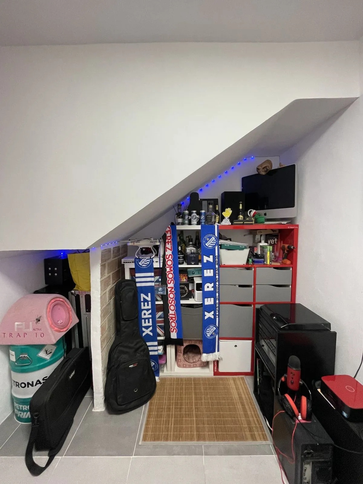 Además, el hueco bajo la escalera se ha aprovechado con un almacenamiento adicional, práctico y funcional.