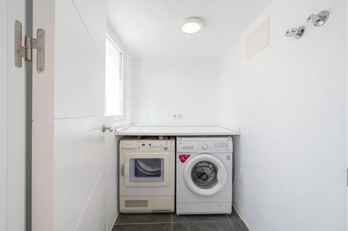 Planta superior: un lavadero se abre a un gran solárium, perfecto para relajarse o entretenerse bajo el sol del Mediterráneo.