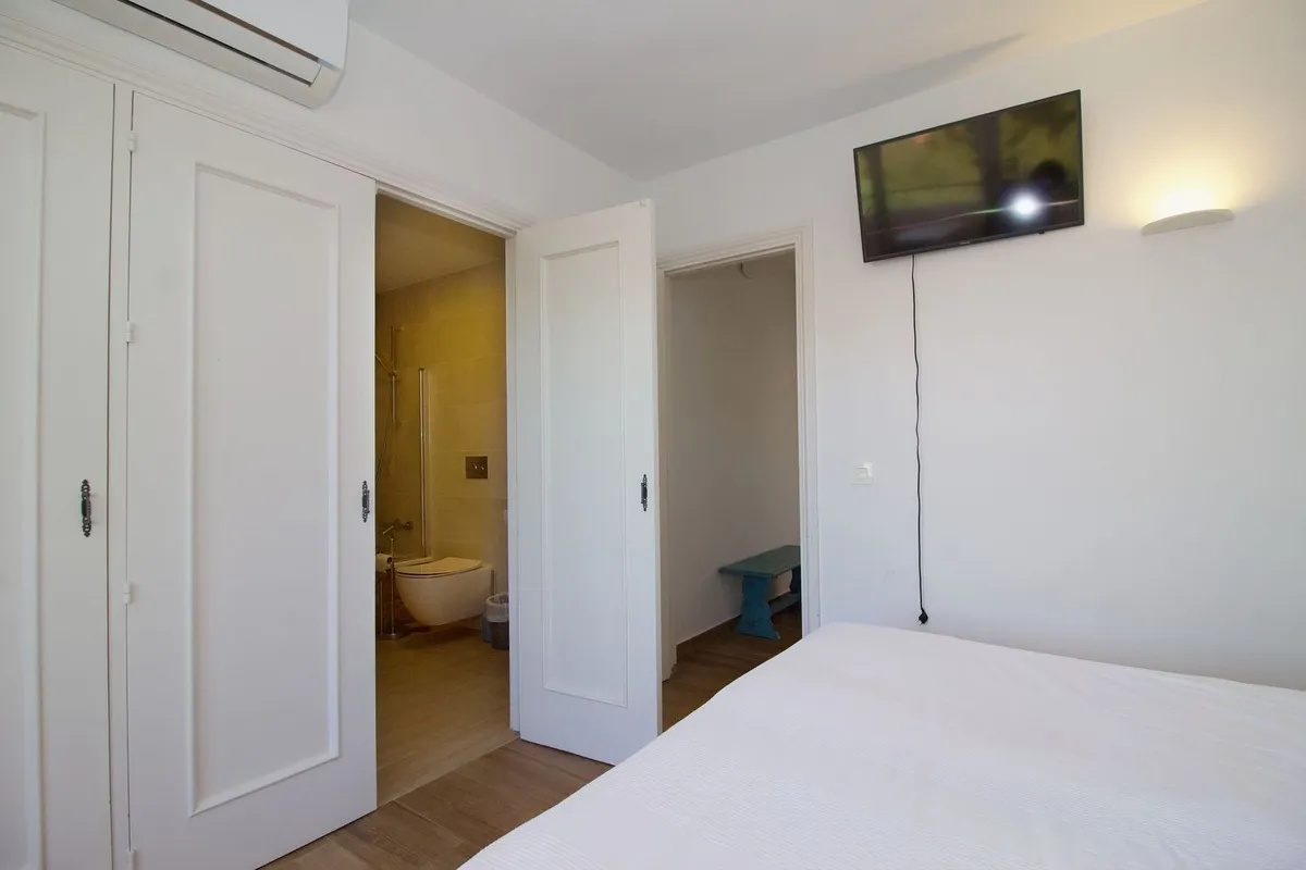 Dos elegantes dormitorios con baños en suite, cada uno con su propia terraza privada, uno con vistas al mar y el otro con vistas al mar y a la montaña.