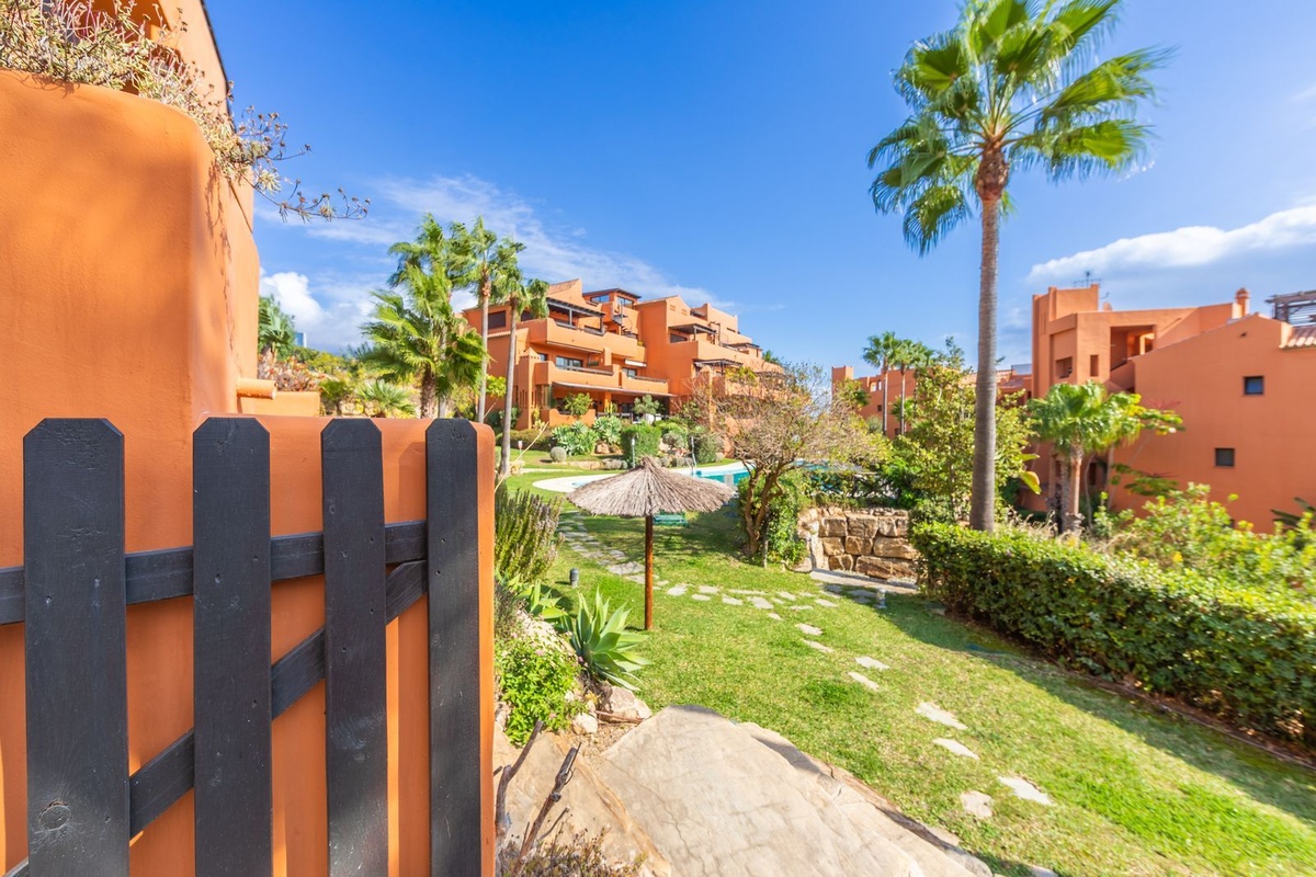 APARTAMENTO EN PLANTA BAJA CON GRAN TERRAZA Y LICENCIA TURÍSTICA CERCA DEL MAR. Ubicación privilegiada en una urbanización de encanto mediterráneo, a solo 200 m de la playa y a 5 minutos en coche de Estepona y del animado Puerto de la Duquesa, donde encontrará todo tipo de servicios, restaurantes y zonas de ocio. Este precioso apartamento en planta baja destaca por su luminosidad, gracias a su orientación sureste, y por su magnífica terraza recientemente reformada, equipada con persianas de cristal, zona de cocina exterior y suelos de parquet que aportan un toque cálido y elegante.