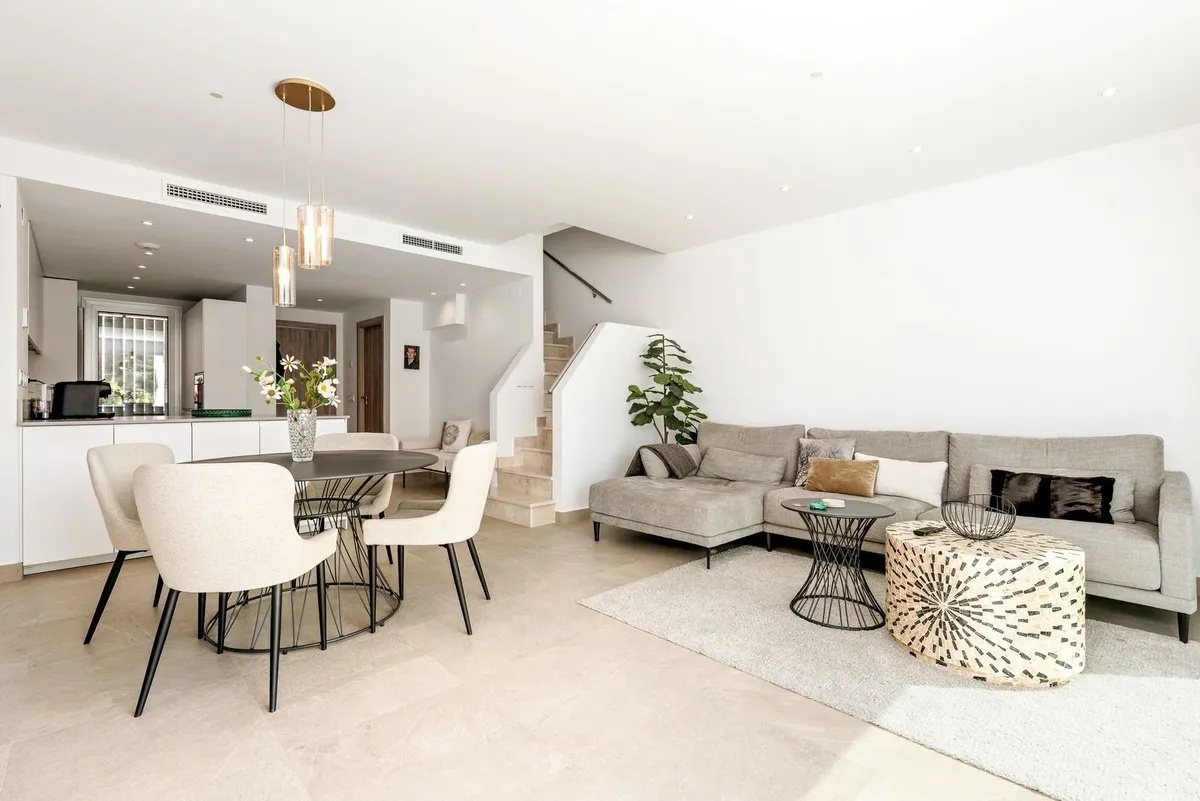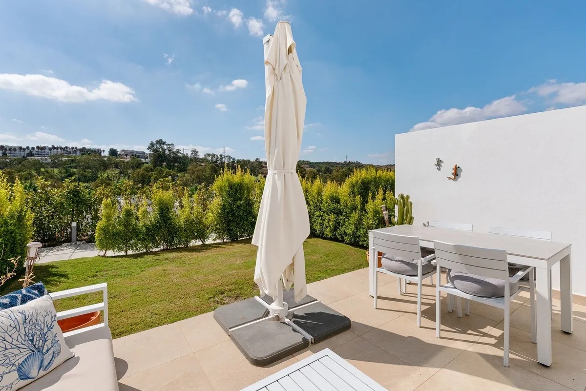 This modern townhouse is located in the newly constructed development, nestled within the renowned Estepona Golf area. The property enjoys a prime location, just a short drive from the beach, shopping, dining, and various amenities, making it ideal for permanent residence .