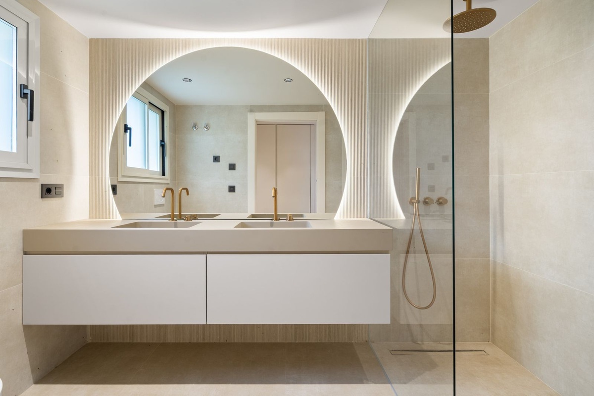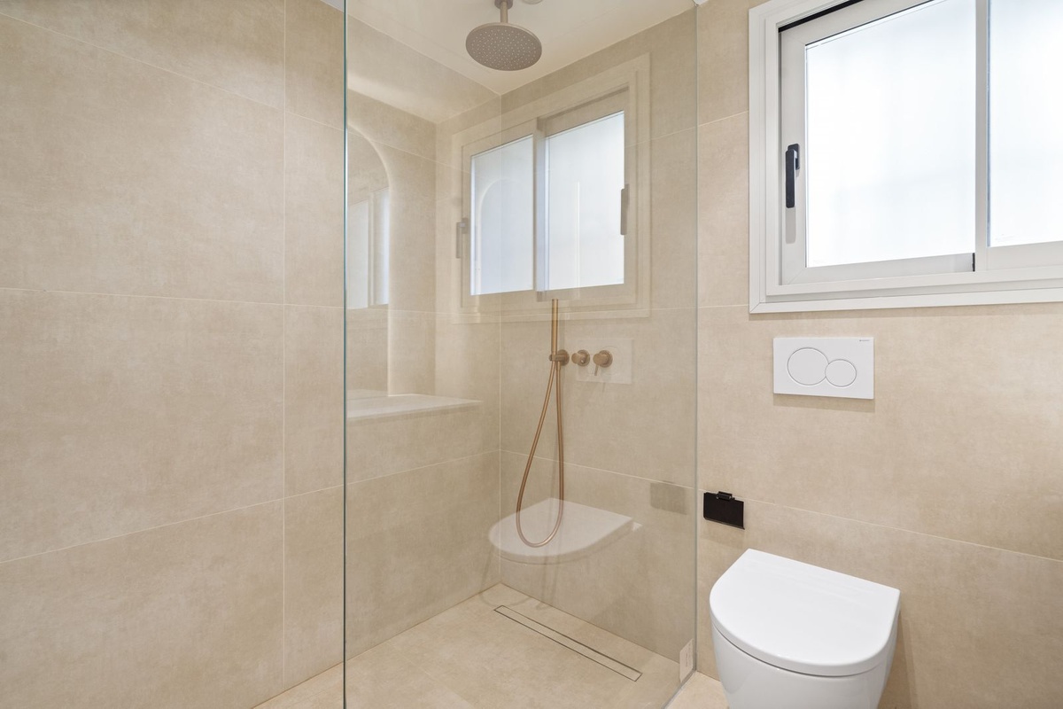 Each of the three bedrooms is fitted with bespoke wardrobes, and the bathrooms feature Italian fixtures, porcelain finishes and integrated lighting that highlight the home’s modern architecture. The renovation has been carefully executed to provide both comfort and sophistication in every detail.