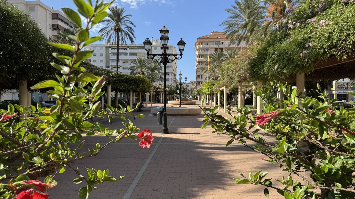 Gracias a su orientación sur, la propiedad disfruta de excelente luz natural durante todo el día. Los tres dormitorios son exteriores, y el salón y los dormitorios ofrecen vistas abiertas y despejadas a la Plaza Hispanidad y Fuengirola, lo que le da a la vivienda una sensación de amplitud y sofisticación. Desde el salón también se pueden disfrutar vistas parciales al mar. Una terraza privada orientada al sur ofrece un espacio perfecto para relajarse o disfrutar del tiempo libre.