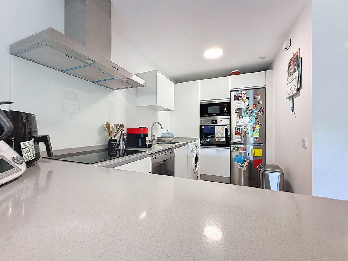Inside, you’ll find a bright and generous living-dining area with a fully equipped open-plan kitchen.