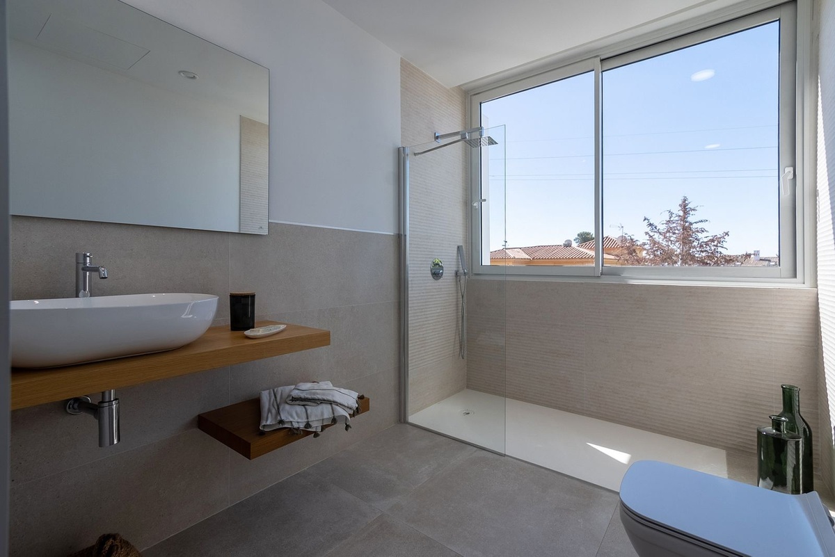Each of our luxury villas has independent plots, a lush garden, private pool, lift and underfloor heating. With large windows and sliding doors that go from the floor to the ceiling, each interior space merges perfectly with the outside, allowing the natural light to inundate every corner of your home.