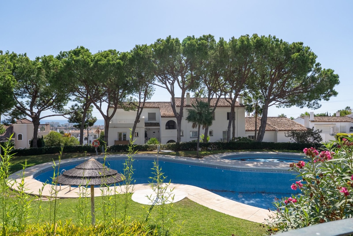 El complejo ofrece piscina comunitaria, jardines bien cuidados y plaza de garaje privada. Su ubicación es ideal, cerca de la playa, campos de golf, tiendas, restaurantes y transporte público — todo a pocos minutos.