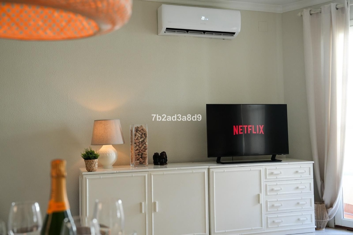 La propiedad dispone de dos dormitorios: un dormitorio principal con cama doble y un segundo dormitorio con dos camas individuales, ideal para familias o invitados. El apartamento también incluye aire acondicionado con calefacción y refrigeración, asegurando el máximo confort durante todo el año.