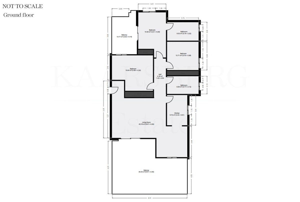Inside, the apartment has a bright living room with a fireplace, a fully fitted and newly renovated kitchen from August 2024, three spacious bedrooms, two bathrooms (one en-suite) and underfloor heating in both bathrooms.